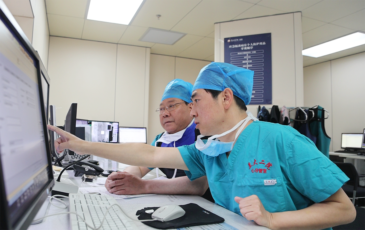 在兰大二院有一支创建于1959年的“护心”团队,是甘肃省最早独立从事心血管疾病预防和治疗的专门学科,经过60余年的发展,已经成为集医疗保健、教育教学、高水平科学研究和专科人才培养为一体的研究型学科。科室自创建以来不断寻求突破,创新发展,锻造了一支本领过硬、敢拼敢赢的“护心”队伍,始终致力于急、危、重、难心血管疾病患者的救治,以真心、爱心、专心、仁心守护着陇原大地心血管疾病患者的健康。在复杂冠脉病变介入治疗、复杂心律失常介入治疗、结构性心脏病介入治疗、心衰患者器械治疗、高血压相关介入治疗以及心血管疾病科学研究等领域处于省内领先水平。