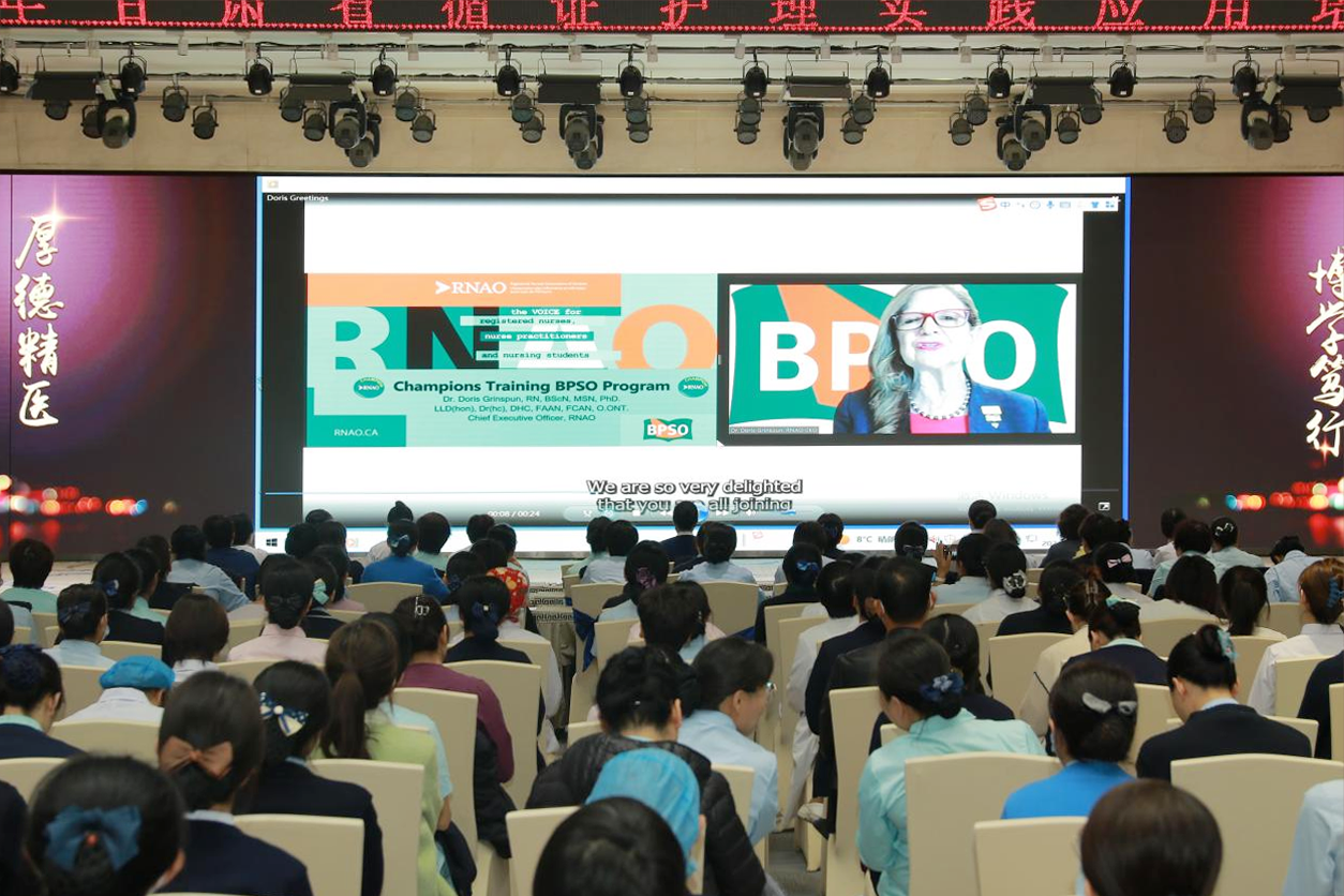 加拿大安大略省注册护士协会(RNAO)首席执行官Doris Grinspun博士在致辞中讲到,感谢中国BPSO最佳指南实践中心为推动全球循证护理发展所做出的巨大努力,对所有参与项目的最佳实践拥护者表示祝贺以及衷心的感谢,对兰大二院护理团队所做的循证护理实践工作给予了充分肯定。
