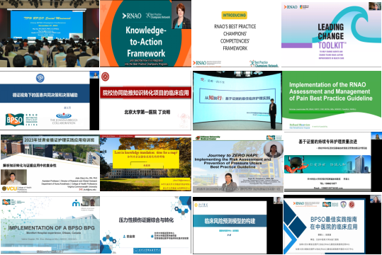会上,国内外护理专家围绕循证护理临床实践、证据转化和应用、实践经验分享等内容进行了解读及交流。May Tao教授、Katherine Wallace教授、Nicholas Joachimides教授、Dawn B.Cimafranca教授、Valérie Chaplain教授、郝玉芳教授、丁炎明主任、蒋艳主任、胡嘉乐博士、赵俊强博士、田金徽教授、田润溪主任、李素云主任、孙超主任等专家作了题为《Toronto Public Health BPSO Social Movement》《knowledge-to-Action Framework;Introducing the Social Movement Action Framework》《The Best Practice Champions Competencies’ Framework》《clinical BPG institute—leading change toolkit》《循证视角下的医患共同决策和决策辅助》《如何开启知识转化的科研路》《解析知识转化与证据应用中的复杂性》和《压力性损伤证据综合与转化》《最佳实践指南的在中医院的临床应用》《基于循证的血栓防治管理》《临床风险预测模型的构建》精彩讲座。