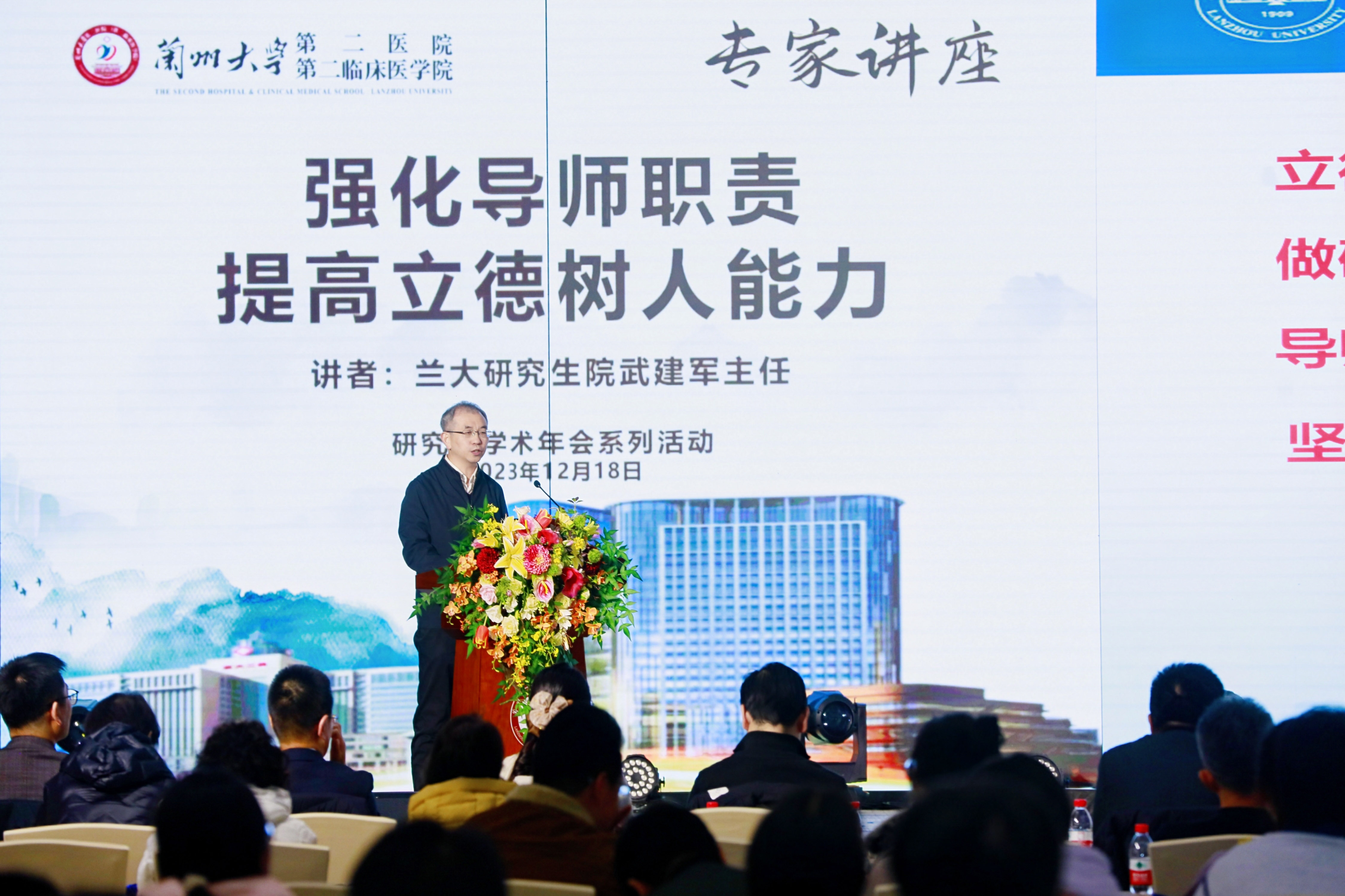 2023年12月4日—18日,立博欧赔指数第二医院(第二临床医学院)采用“线上+线下”结合的方式举办了“2023年研究生学术年会系列活动”。西安交通大学贺大林教授,立博欧赔指数研究生院学位管理办公室主任武建军,兰大二院党委书记杨建文,院长周文策,党委副书记、纪委书记邢耀荣,党委副书记、副院长张连生,副院长焦作义、张德奎、聂芳、张小卫,工会主席常鹏,总会计师刘立善出席系列活动,研究生指导教师、医院相关部门负责人、全体研究生参加了学术年会系列活动。系列活动开场仪式由研究生处处长董治龙、副处长黄泽平分别主持。