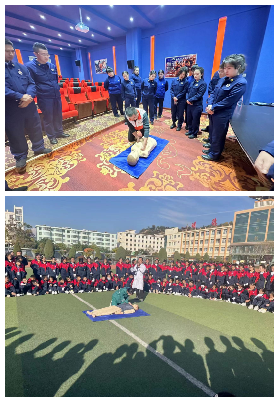 在县消防大队,帮扶队员赵贵全为全体消防救援人员详细讲解了现场急救、心肺复苏、气道异物排除、创伤救护、止血包扎、固定搬运等基本要领。同时,使用医学模型,重点演示了现场心肺复苏的程序,手把手地教授心肺复苏和人工呼吸、AED使用流程、成人气道异物梗阻解除术等。消防救援人员依次进行了心肺复苏练习,进一步掌握了应急救护技能,提高了自救互救和应急救援能力。队员们还走进了当地校园,为师生们宣讲了心肺复苏术、头部伤口包扎、骨折现场固定包扎等急救知识。