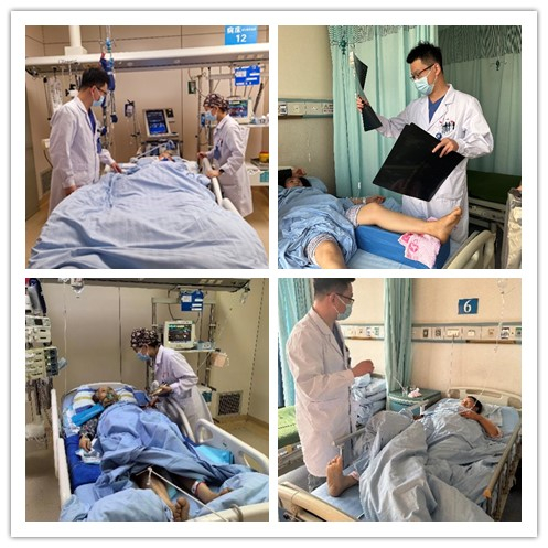为了确保患者能够尽早康复,兰大二院康复医学科紧急组建地震伤者康复治疗小组开展患者早期床旁康复治疗工作。考虑到骨折患者的后续治疗,小组主要对患者进行踝泵、股四头肌静力性收缩等恢复治疗,预防下肢深静脉血栓形成、肌肉萎缩和关节粘连,为患者后续手术治疗提供了保障。对于重症颅脑损伤、脊髓损伤和多发骨折等患者,康复医学科积极跟踪会诊,完善康复评定,尽早开展促醒、肢体运动功能康复、吞咽功能训练、中医康复及高压氧等综合康复治疗,促进患者功能恢复,降低患者致残率,助其早日回归家庭和社会。