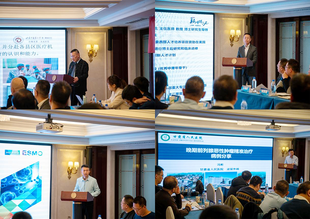 会上,兰大二院柴克强教授、董治龙教授,兰大一院李卫平教授、甘肃省人民医院冯彬教授分别作了《前列腺癌早期筛查工作经验的分享》《瑞维鲁胺CHART研究回顾及mHSPC患者ADT联合治疗网状Meta分析解读》《2023ESMO mHSPC研究进展》《瑞维鲁胺治疗前列腺癌的病例分享》的专题报告。