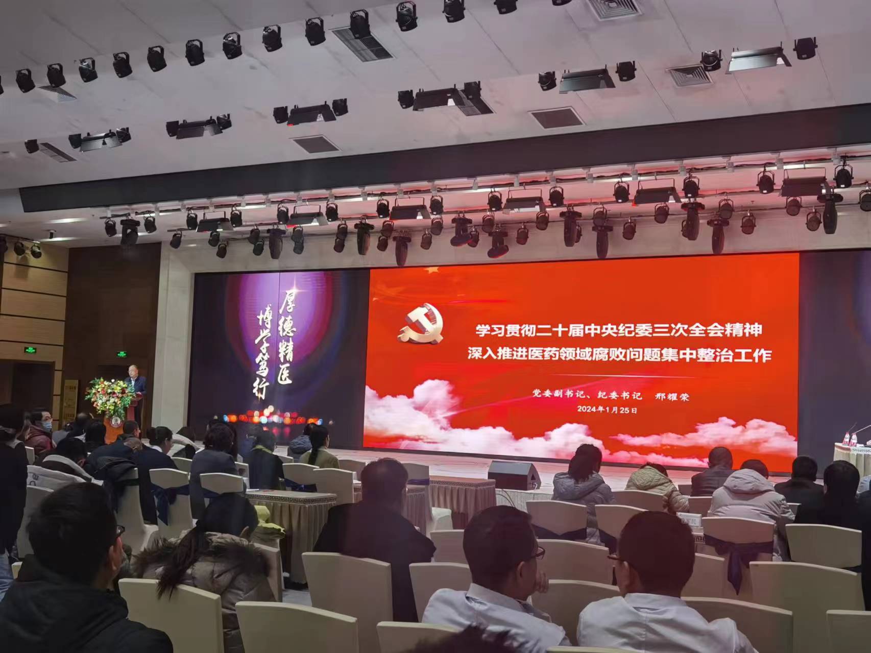1月25日下午,党委副书记、纪委书记邢耀荣在萃英大讲堂传达并领学习近平总书记在二十届中央纪委三次全会上的重要讲话精神和二十届中央纪委三次全会公报,全院副科级以上干部,临床医技科室、病区负责人、护士长共500余人参加。