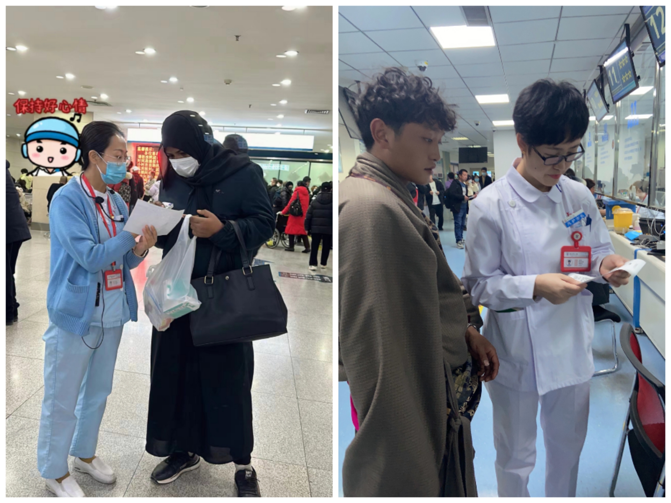 门诊部安排专人值守引导老弱孕残等行动不便者乘坐专用电梯就诊。优化排班机制,实行分时段弹性排班,增加8:30-10:30门诊采血护理人员班次,将采血等待时间控制在5分钟以内,高效完成采血及送检工作。创新导诊服务和便民措施,增加导诊人员为初诊患者进行专业分诊、协助患者挂号、缴费、检查报告打印。畅通就医渠道,对诊区70岁以上老年群体提前安排就诊,主动为外国友人、少数民族患者提供就诊翻译服务。引导错峰就诊,充分利用午间及夜间门诊为学生和上班族等群体服务,缓解就诊拥挤,提升就医质量。