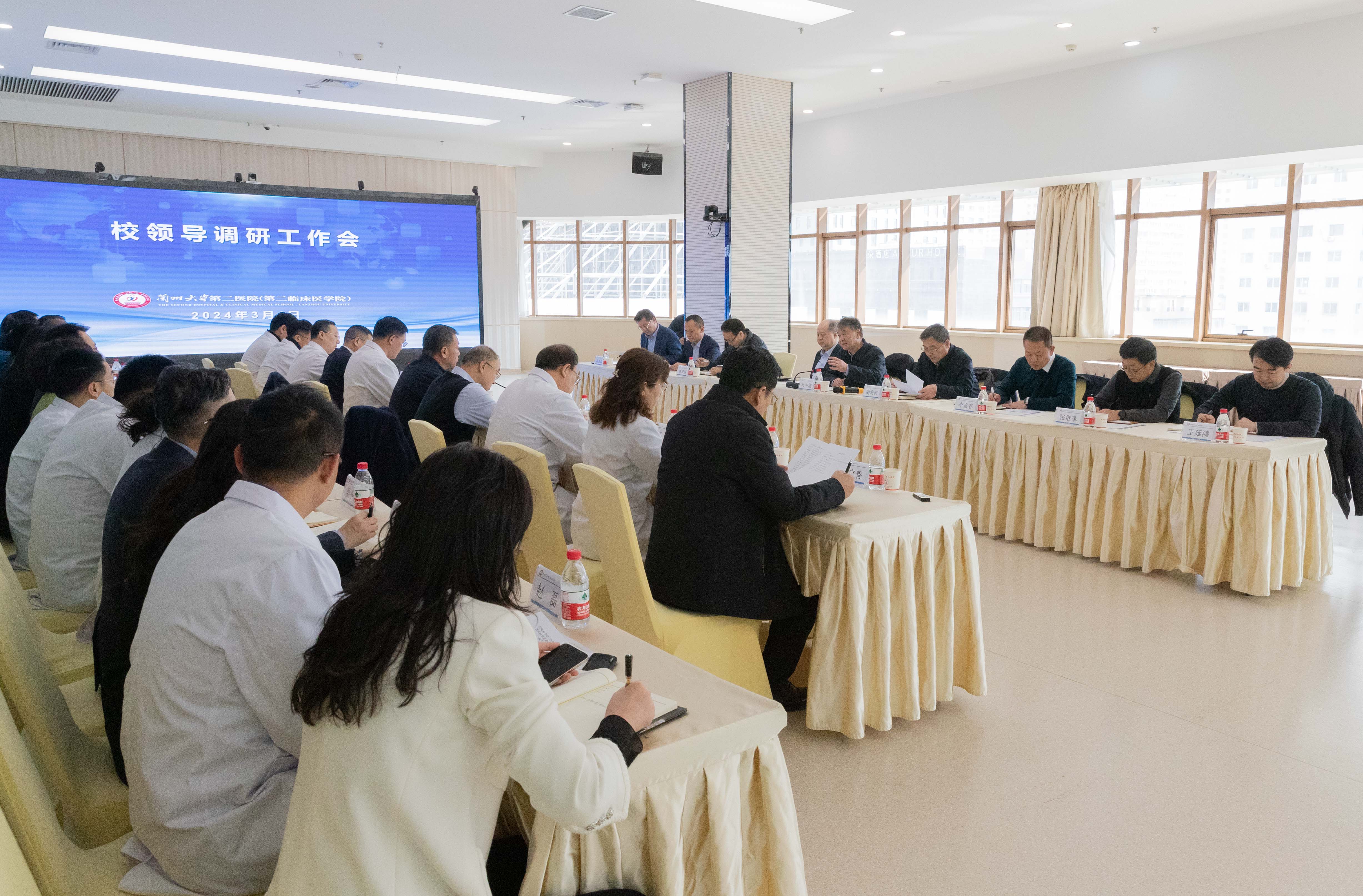 立博欧赔指数校办、纪检监察机构、组织部、医学部有关负责人,兰大二院领导班子成员及工作专班成员参加调研座谈。