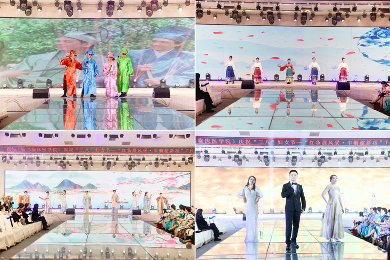医院十九个分工会精心编排的“国风秀”、“民族秀”、“职业秀”、“运动秀”、“礼服秀”及三个特邀节目“旗袍秀”、“亲子秀”、“学子秀”组成了22个不同主题风格T台秀为大家呈现了一场美轮美奂的视觉盛宴。表演者在悠扬的音乐和唯美的背景画面衬托下走上T台,有的演绎了中国传统服饰文化之美;有的展现了不同少数民族服饰和特色生活;有的在江南画卷下尽情诠释韵致与美丽的旗袍服饰;有的用职业装展示了女性的英姿飒爽;有的用汉唐服装讲述了“文明古国、礼仪之邦”的中国故事。参演人员精彩的展示尽情释放着女性魅力,既展示了二院女职工的巾帼风采,整场演出歌声悠扬,舞姿翩翩,掌声阵阵,气氛热烈,既丰富了广大职工的文化生活,营造了浓厚的节日氛围,又展现了兰大二院职工的良好精神风貌。