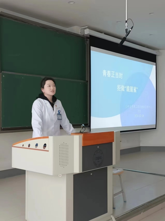 兰大二院健康体检中心医技科室负责人闫雯以“青春正当时 拒做‘脆脆鲨’”为主题,从饮食、情绪、运动、作息四个方面展开了讲解,深入浅出、图文并茂,细致地为大家普及健康知识,倡导大家要养成良好的生活习惯及健康的饮食卫生习惯,做到科学防护,远离疾病困扰。