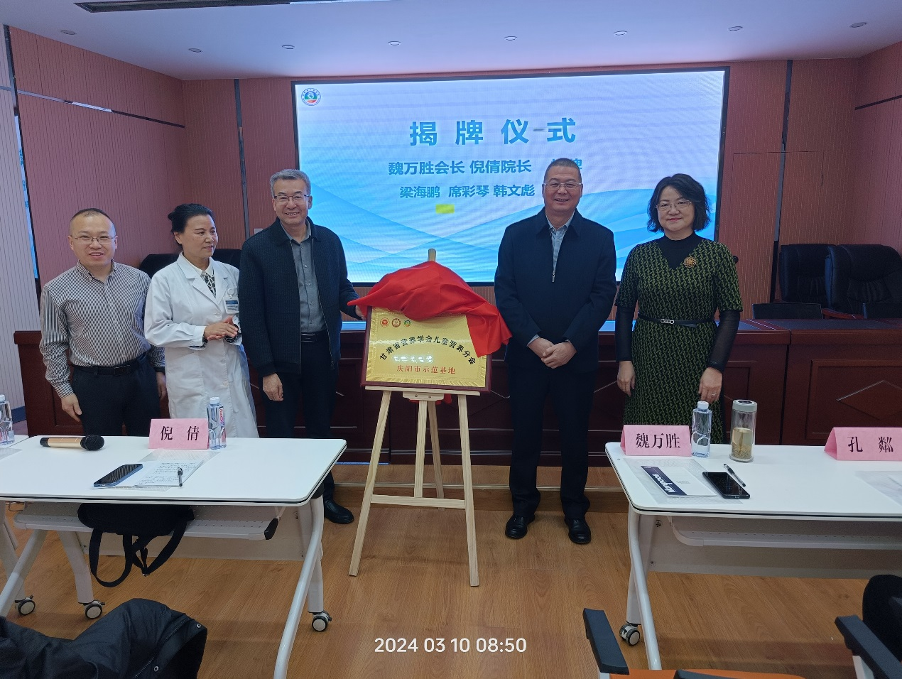 3月10日,甘肃省营养学会儿童营养分会营养知识巡讲(庆阳站)暨庆阳市示范基地揭牌仪式在庆阳市人民医院举行。甘肃省营养学会儿童营养分会会长魏万胜、兰大二院甘肃省儿童医院院长倪倩、庆阳市人民医院副院长梁海鹏出席揭牌仪式。