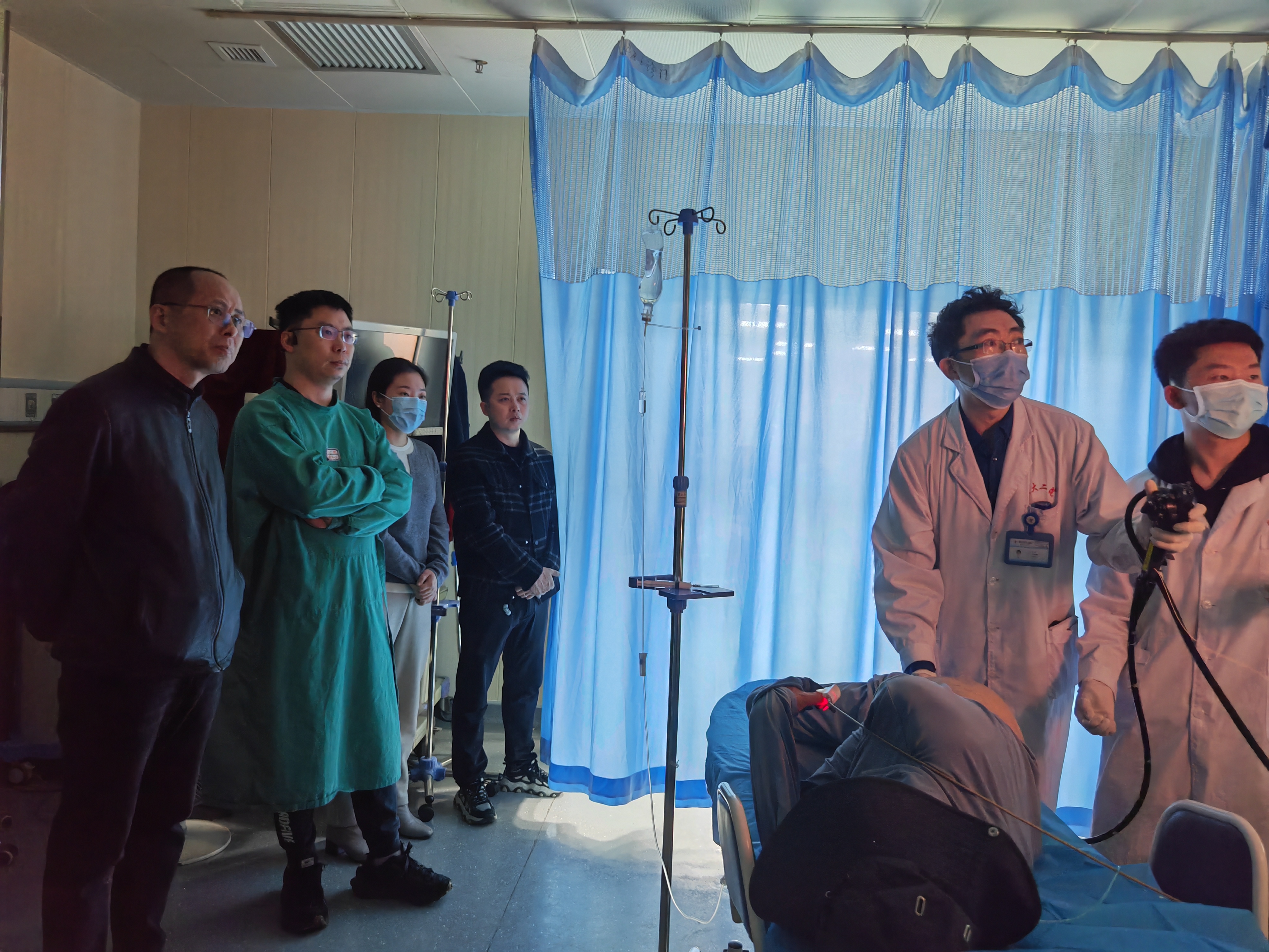 科技处处长、肿瘤外科主任陈昊对专家们的到来表示热烈欢迎。他详细介绍了医院开展消化道肿瘤光动力治疗的临床和基础研究,特别是对胃癌幽门梗阻患者进行的临床注册试验以及通过单细胞测序对样本分析方法及取得的临床疗效及光动力影响胃癌患者免疫微环境机制相关情况。他表示,通过学术交流互访,进一步加强医院与华西医院的交流合作,共同推动光动力治疗的发展和应用,服务更多患者。