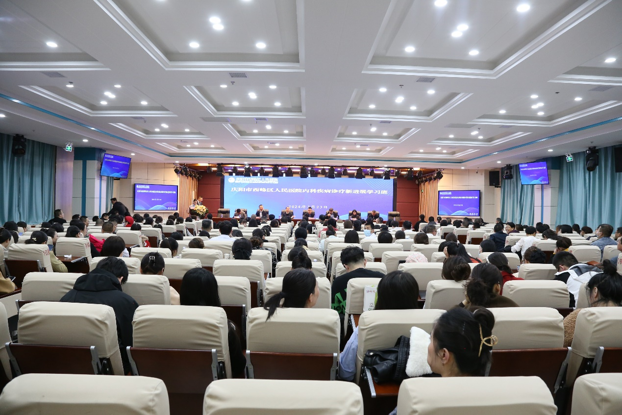 为进一步提升甘肃省基层内科专业诊疗水平,积极推动基层卫生健康事业高质量发展,扎实推进“三抓三促”行动。3月23日,兰大二院院士工作站专家赴庆阳市西峰区人民医院开展基层行义诊学术讲座活动。庆阳市西峰区卫健局党组成员、副局长刘占海,西峰区人民医院院长王军锋,副院长李伯英,兰大二院神经内科主任医师张振昶、心血管内科主任医师吴强、呼吸内科主任医师陶红艳、消化内科副主任医师郝晋雍、神经外科副主任医师唐博等专家以及来自西峰区各医疗机构医务人员300余人参加活动。