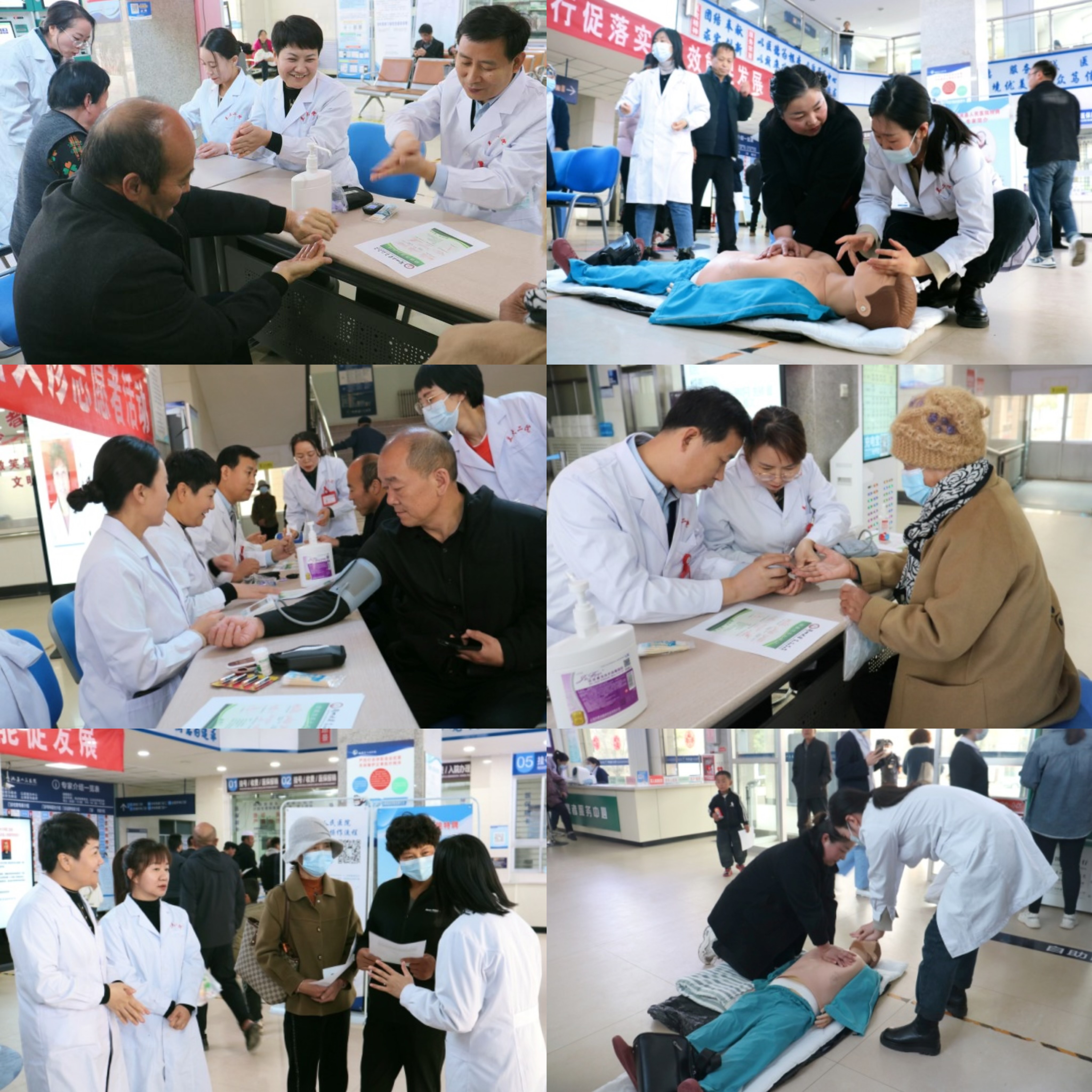 活动中,志愿者通过宣讲和操作示范,指导群众掌握正确的手卫生方法,积极科普手卫生在促进健康维护方面的重要性,帮助公众提升预防传染病的意识和能力。并详细讲解了心肺复苏技术的要点,指导群众学习掌握在突发事件中自救、互救技巧,培养急救意识和技能。同时,通过张贴宣传海报、发放宣传手册、健康咨询等方式科普了高血压、糖尿病的危害及防治方法,同时为现场群众提供了免费测血压、测血糖。