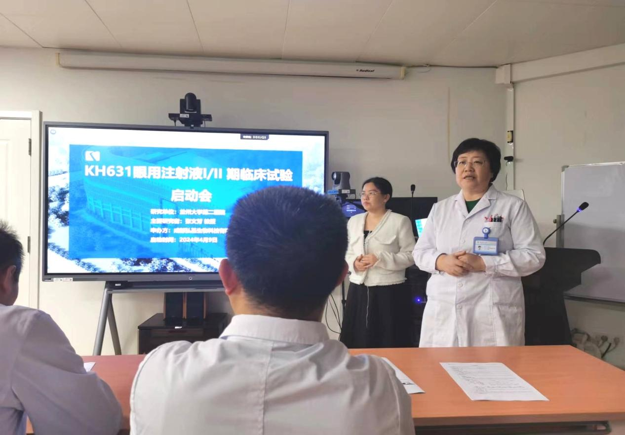 2024年1月20日,在召开的“KH631Ⅰ期临床研究阶段数据交流会”上,兰大二院作为新增中心中重点推荐单位受邀参加会议,与会研究者作了视网膜下注射、受试者注射后的反应和处置过程经验分享。