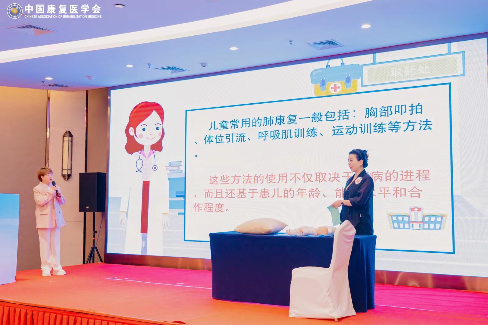 近年来,儿童支原体肺炎、大叶性肺炎患病率居高不下,很多家长对肺康复知识知之甚少,造成患病儿童恢复期延长,导致发生再住院。小儿呼吸科团队在本次大赛中通过视频科普和现场演示对儿童肺康复治疗的方法进行讲解,详细演示了婴幼儿胸部扣拍,体位引流和儿童呼吸训练及儿童日常生活通过吹气球,爬楼梯等简单易操作方法增强儿童活动耐受力,改善肺部通气功能。