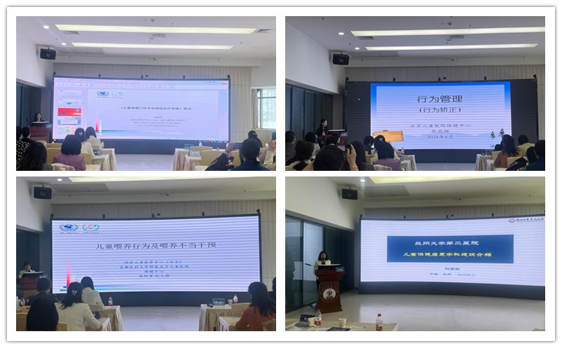 开幕式后,梁爱民、熊妮娜、杨炯贤及兰大二院刘亚红分别以《儿童保健门诊常见病症诊疗常规》《行为管理》《喂养行为及喂养不当干预》《儿童保健康复学科建设》为题,详细介绍了儿童保健学的发展、评价评估、治疗与干预、儿童饮食行为发育及喂养问题的常见表现、原因、诊断评估和干预措施,以及甘肃省儿童医院以“患者为中心”的理念启航、学科发展、人才梯队建设等方面内容。