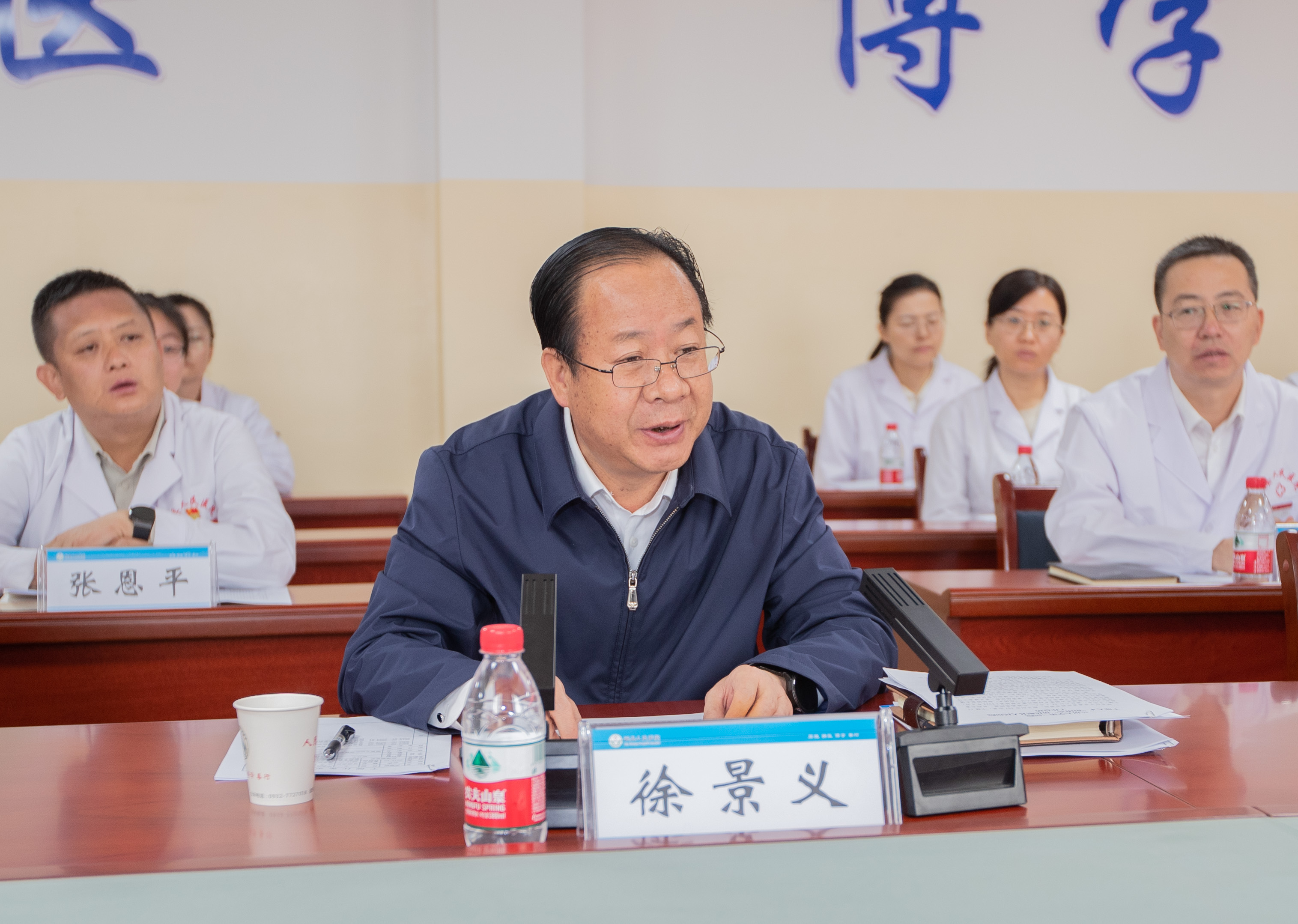 徐景义代表县委、县政府向杨建文书记一行表示热烈欢迎,向兰大二院长期以来对岷县卫生健康事业发展给予的帮扶支援表示衷心感谢。他说,近三年来,岷县县委、县政府高度重视卫生健康事业的发展,坚持生命健康至上,多措并举提升县域医疗服务保障水平,特别是兰大二院开展“组团式”帮扶以来,“用情”助力人民医院诊疗水平实现新提升,“用心”培养医疗领域专业人才取得新突破,“用力”支撑全县卫生事业发展迈上新台阶,为全县医疗卫生事业的长远发展作出了突出贡献。下一步,岷县将认真贯彻党中央和省、市关于干部人才“组团式”帮扶的各项决策部署,一如既往将实施干部人才“组团式”帮扶作为巩固拓展脱贫攻坚成果同乡村振兴有效衔接的一项重要举措,主动精准对接,用好帮扶资源,强化服务保障,持续在提升帮扶质效上做文章、在强化激励措施上出实招、在提升医疗水平上求突破,全力打造“组团式”帮扶“新样板”,推动全县卫生健康事业发展取得新的更大成效。