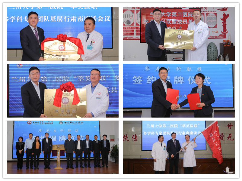 同时,周文策向肃南县人民医院、高台县人民医院等医院进行了“萃英专科联盟”成员单位授牌,与山丹县人民医院签订了萃英专科联盟合作协议书,并向兰大二院巡回医疗队队员授旗。