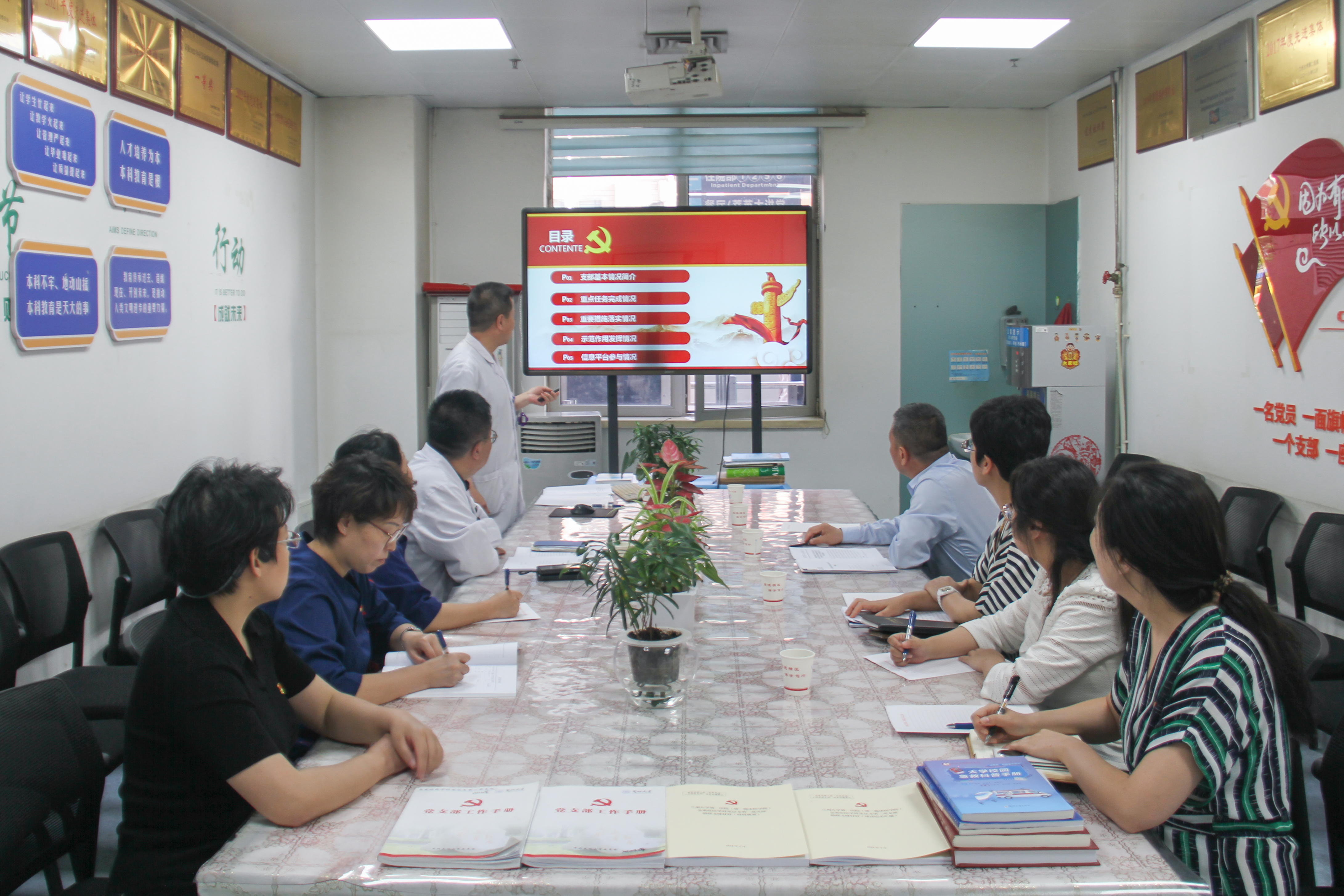 王映珍从支部基本建设、重点任务完成、重要措施落实、示范作用发挥、信息平台使用情况等五个方面就全国党建工作样板支部培育建设工作进行汇报。急重症医学科党总支第二党支部自培育创建工作开展以来,支部主动对标新时代高校党建示范创建和质量创优工作要求,重点围绕实现党支部“七个有力”,构建了“支部—教学—医疗”三位一体的工作模式,进一步激发支部工作活力,提升组织工作实效,全力构建党建工作新格局。