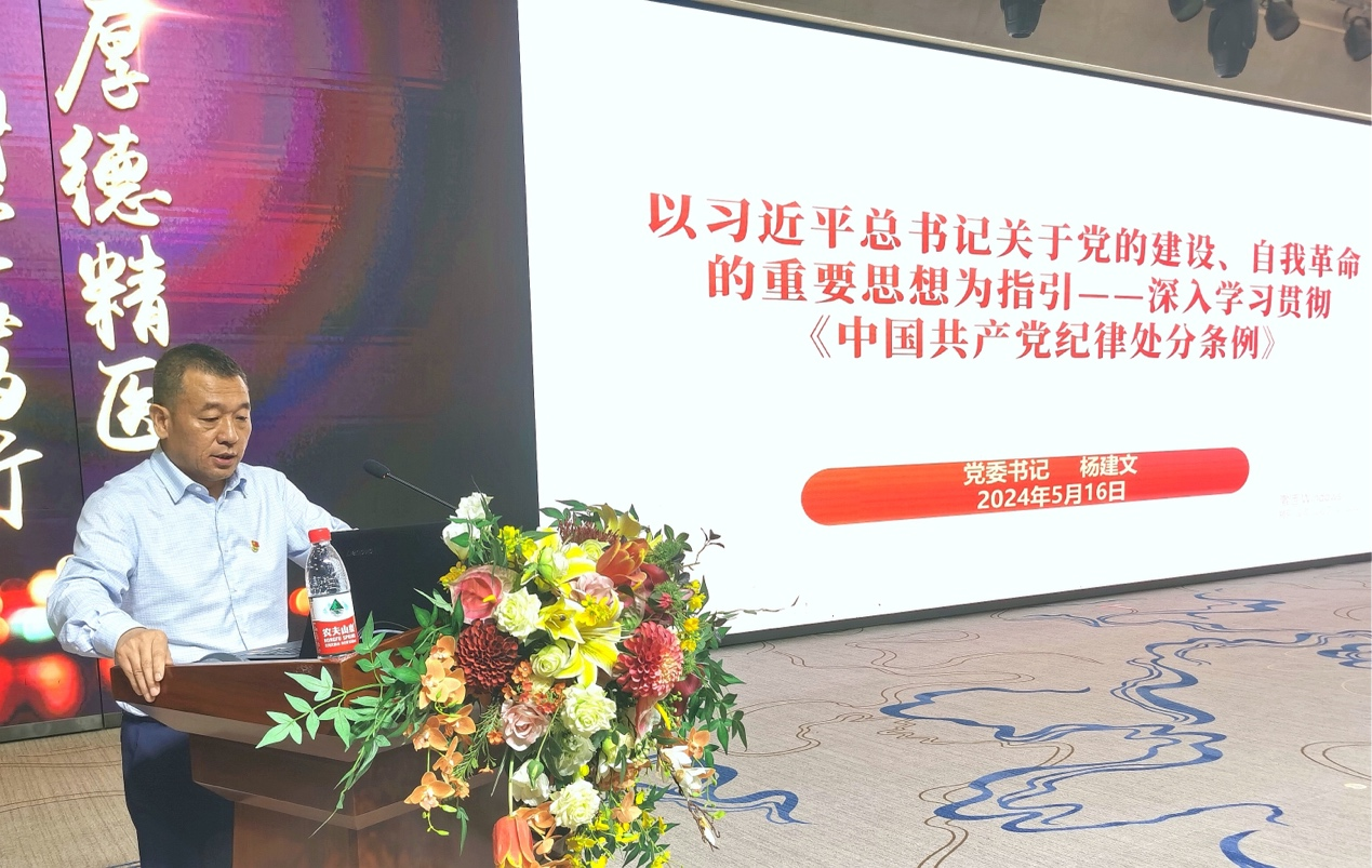 杨建文以“以习近平总书记关于党的建设、自我革命的重要思想为指引--深入学习贯彻《中国共产党纪律处分条例》”为题,围绕学习领会习近平总书记关于党的建设的重要思想、学习领会习近平总书记关于党的自我革命的重要思想、深刻认识开展党纪学习教育的重大意义、准确把握党纪学习教育的目标要求和学习重点、深入学习贯彻《中国共产党纪律处分条例》等五方面讲授纪律党课,进一步引导党员干部始终把严守政治纪律和政治规矩放在首位,把党的纪律规矩融入日常工作生活,切实做讲规矩有纪律知敬畏守底线的带头人。
