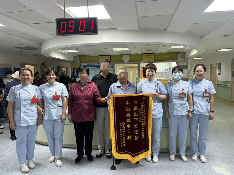 出院之际,患者特意制作了一面锦旗赠予泌尿外科三病区医护团队,锦旗绣有“白塔山下好医护,中山桥旁有三科”的字样,表达了对医护人员的感激之情。