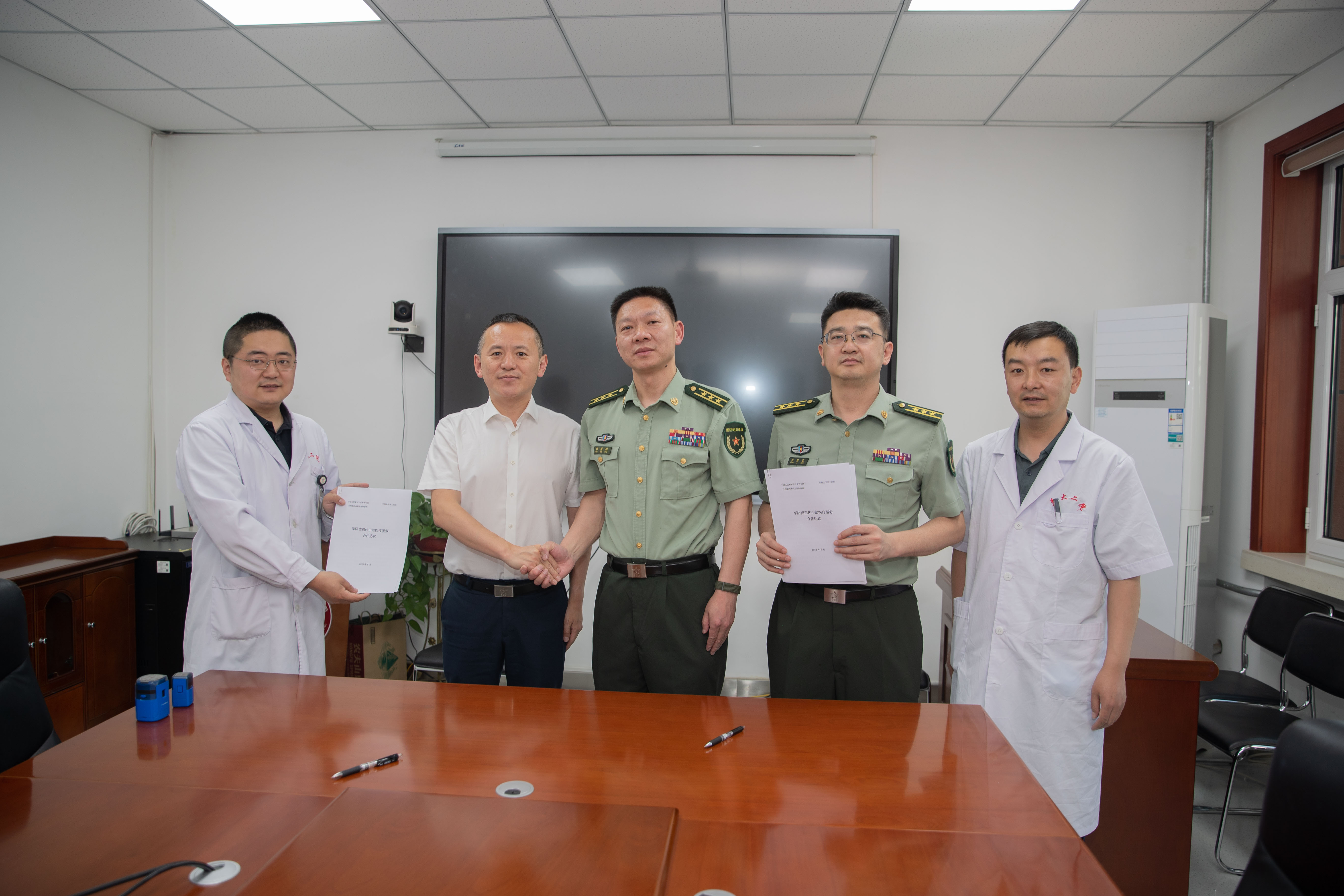 为全面贯彻落实国家《关于加强新时代军队离退休干部工作的意见》《关于做好新时代离退休干部亲情化规范化标准化社会化服务保障工作的通知》等文件精神,充分发挥兰大二院爱国拥军力量,优化医疗资源,开辟军地协同救治“绿色通道”,6月11日,兰大二院和甘肃省军区兰州第四干休所签订了《军队离退休干部医疗“绿色通道”协议》。