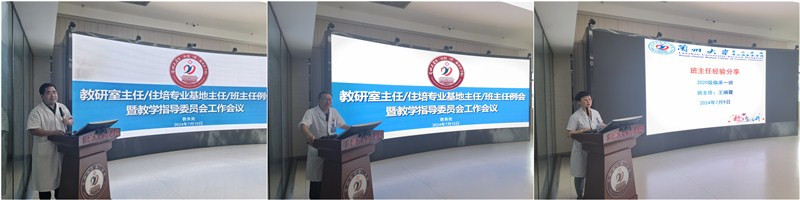教学指导委员会委员代表王迎斌汇报了本学期教学指导委员会工作情况,并分享了教学工作中的经验;住培专业基地主任代表张正义结合全科医学学科特色,介绍了基地建设成果与成效;班主任代表王娟霞汇报了班主任工作情况,分享了班主任工作心得。