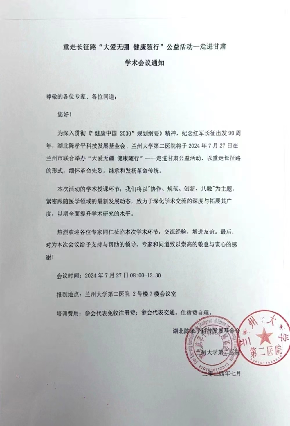 重走长征路“大爱无疆 健康随行”公益活动——走进甘肃学术会议通知