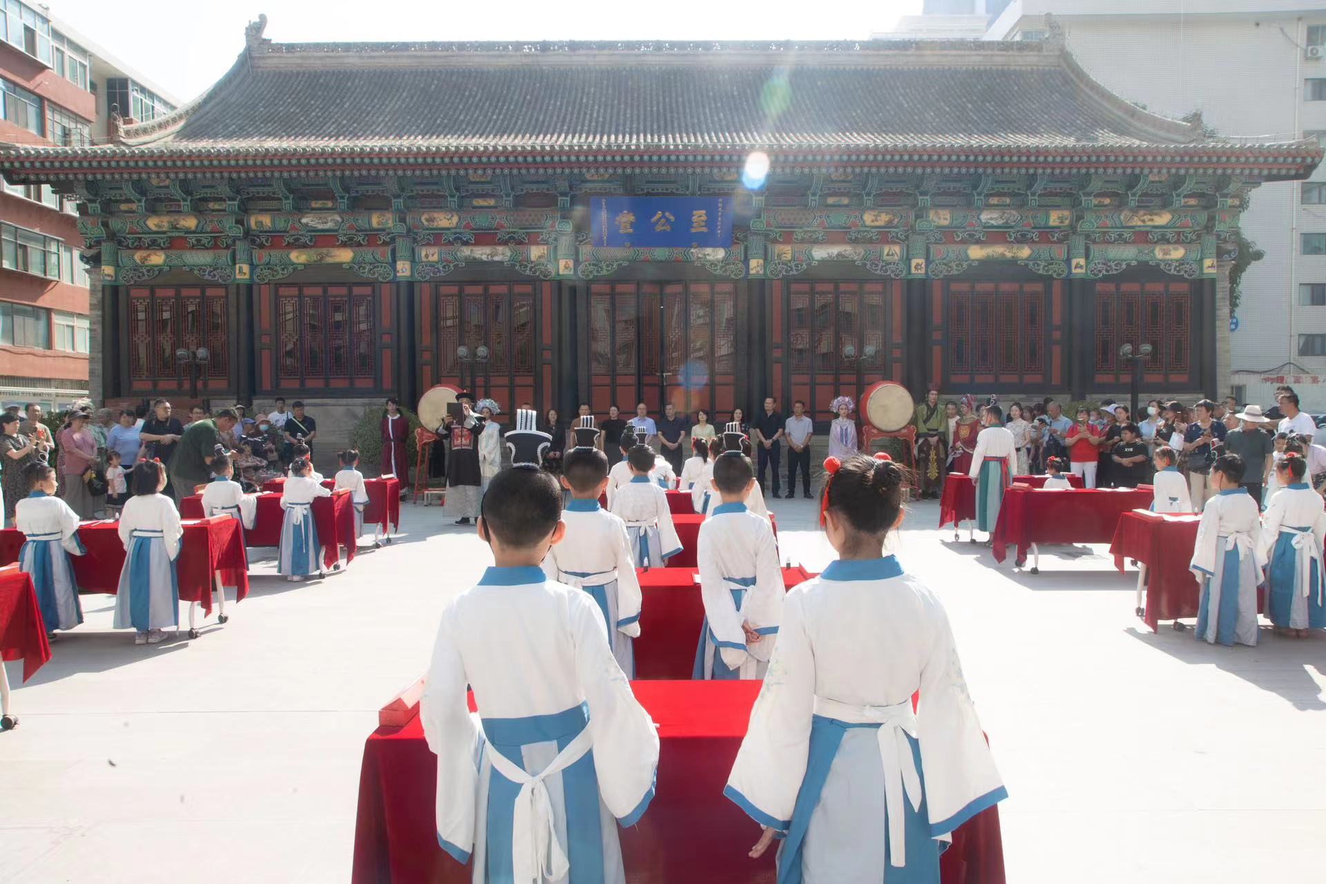 活动现场,身着崭新汉服的一年级学生在家长与老师的共同见证下,依次进行正衣冠、朱砂启智、击鼓鸣志、启蒙描红、诵读经典、感恩鞠躬等环节。孩子们于开笔礼仪式中,深切体悟“明礼、知礼、行礼”的传统文化魅力,以饱满的姿态,迈出学习生活的第一步。随后,参观了历史悠久的至公堂。