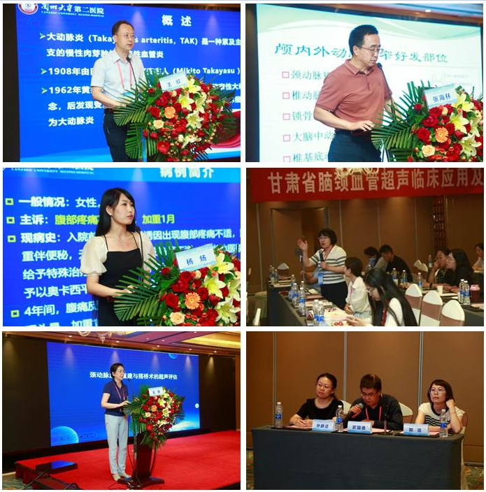 会议特邀首都医科大学宣武医院华扬教授、贾凌云教授,广东省中医院钟经馨教授,郑州大学附属洛阳市中心医院宋彬彬教授,吉林大学附属第一医院王丽娟教授,空军军医大学第二附属医院王佳教授,兰大二院神经血管功能科王欣主任和孟璇主任,白银市第一人民医院宿艳主任分别以《多血管病超声检查诊断分析》《血管超声对颈静脉病变检查分析与治疗评估》《对比增强TCD发泡实验专家共识及相关问题讨论》《头颈血管超声注意事项及解析》《血管超声及卒中中心多学科融合与质控》《超声在脑实质疾病诊断中的应用价值》《大动脉炎的超声评估》《颈动脉血运重建与搭桥术的超声评估》等主题进行专题讲座。随后,参会代表围绕《脑颈超声一体化评估侧枝循环》《反复头晕,谁之责?》《一例主动脉褶曲畸形合并椎动脉开窗畸形的救治》《青年女性反复腹痛的诊疗之路》等内容进行了病例展示与交流讨论。