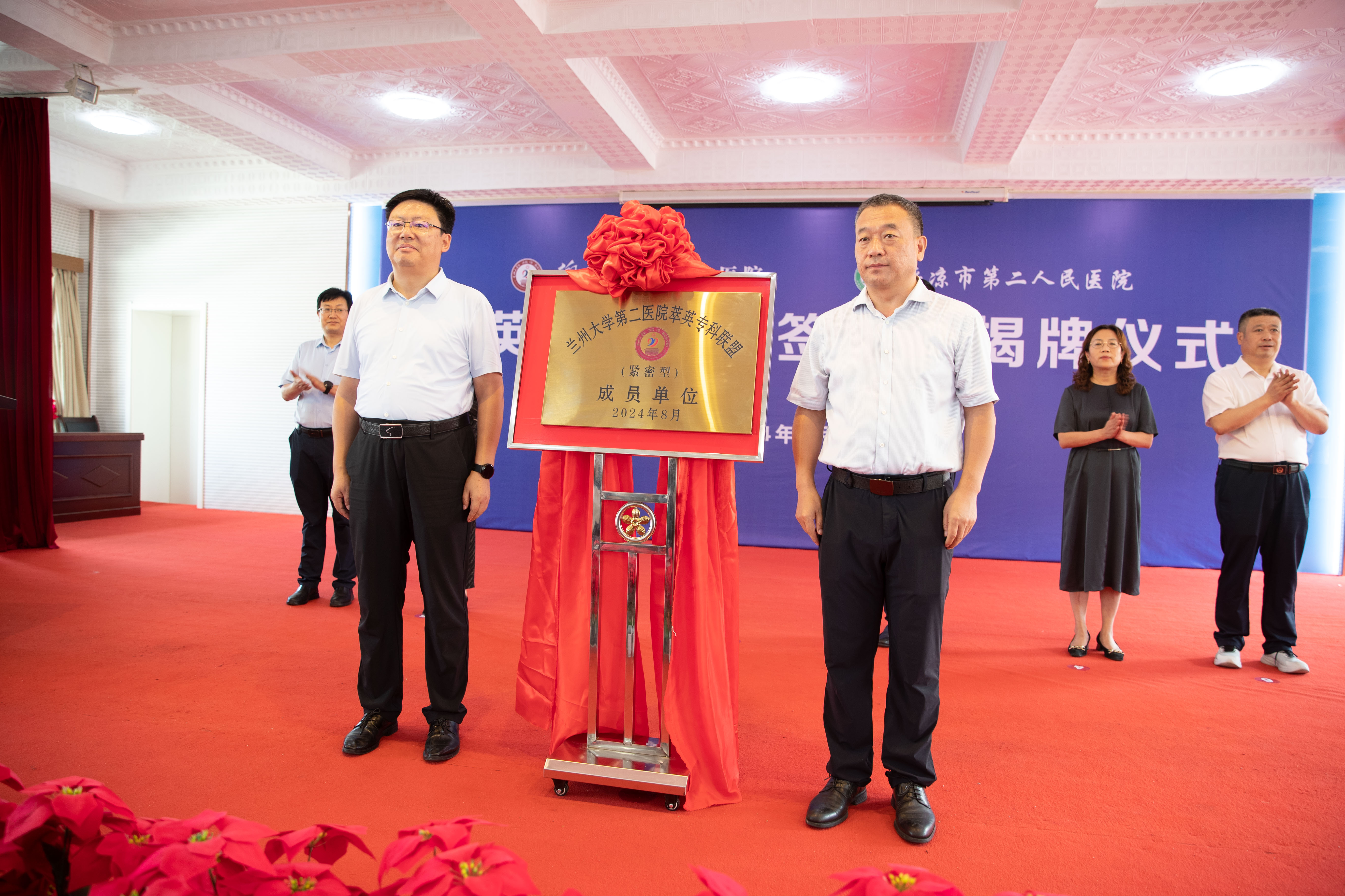 刘懿平与杨建文为平凉市第二人民医院萃英专科联盟揭牌