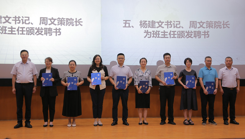 党委书记杨建文宣读了2024级班主任聘任文件,他指出,班主任要坚持“为党育人、为国育才”理念,做好青年朋友的知心人,青年工作的热心人,青年群众的引路人,帮助同学们成长为国家需要的优秀医者。