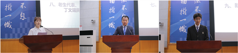 教师代表王克平老师表示,爱字当头,用心育人,教学相长,共筑未来,他表示将以满腔的热情和无私的奉献,为同学们成长成才贡献智慧。老生代表、2022级本科生丁文瑶同学表示,大学生活是一段充满机遇与挑战的旅程,要以敢为天下先的豪情,刻苦钻研,突破创新。新生代表、2024级本科生寇家骏同学表示,天行健,君子以自强不息,要志存高远,自强自立,在医学的道路上矢志不渝,勇毅前行。
