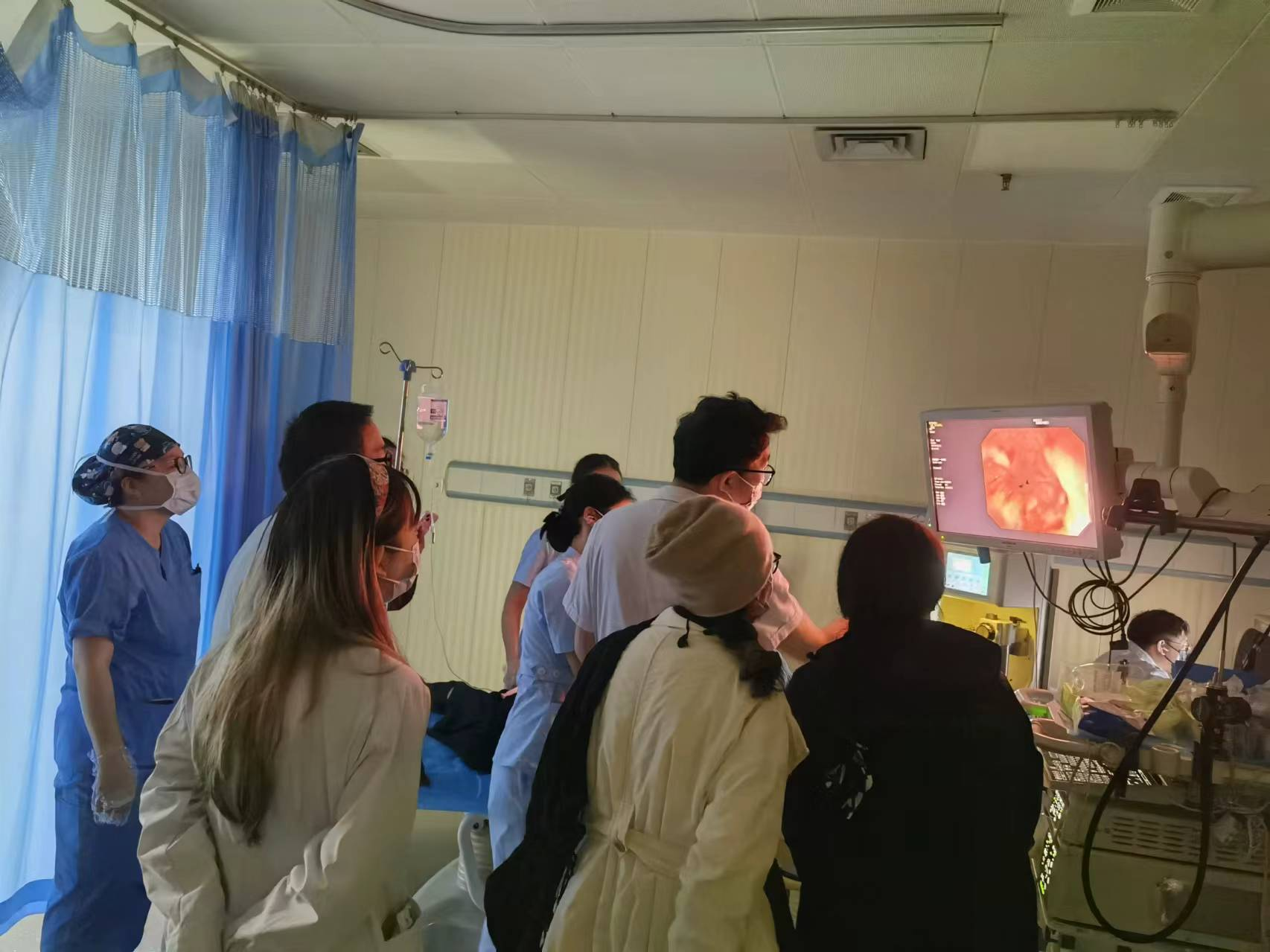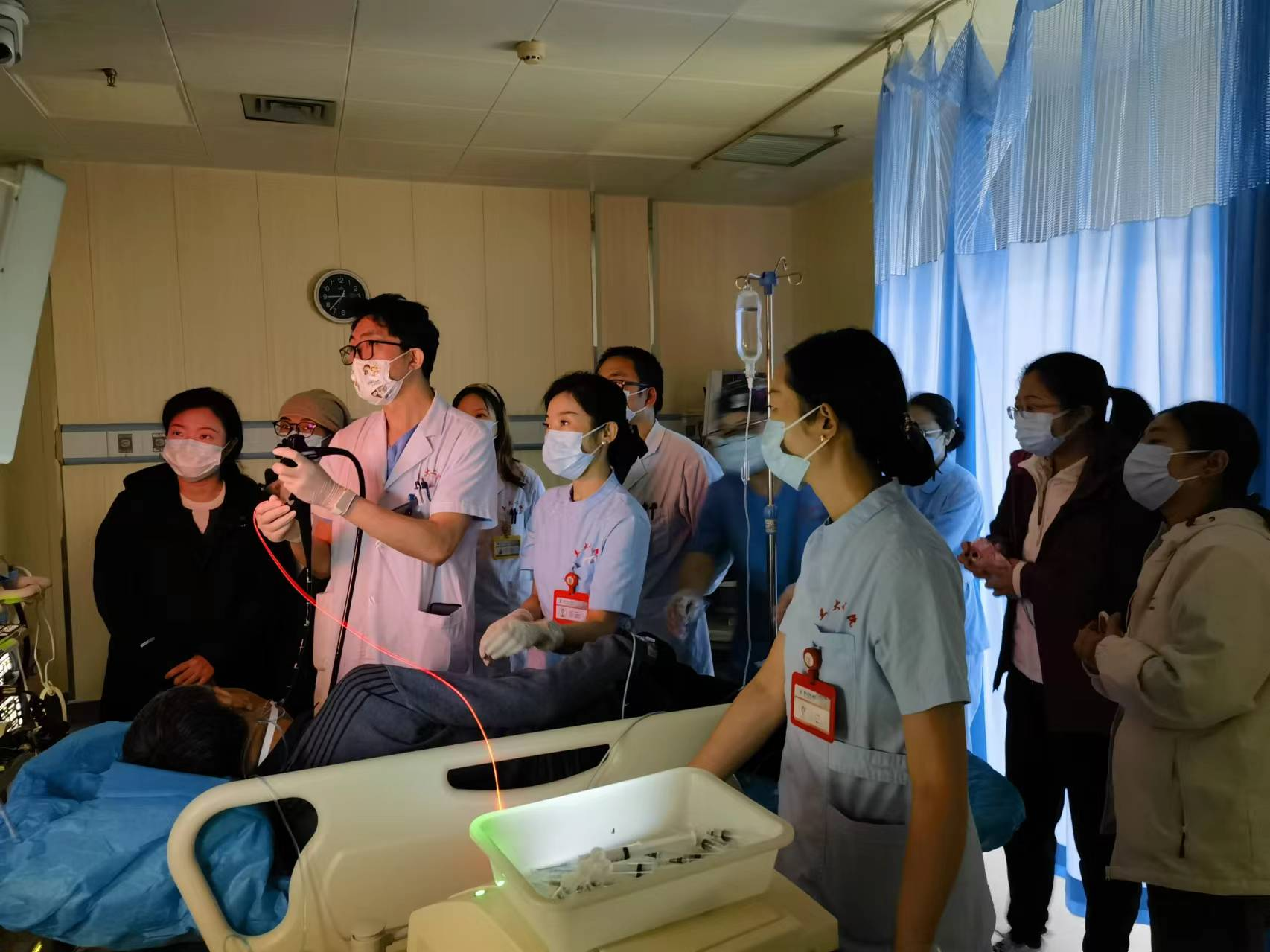 肿瘤中心主任陈昊热烈欢迎华西医院同道的到访。他带领到访人员到内镜中心对光动力治疗的过程进行实地参观学习,并详细介绍了光动力治疗的适应症,治疗中的关键影响因素。他表示,随着光动力治疗技术的不断发展,光动力治疗的适应症不断拓展,期待这项治疗技术能在未来让更多的患者受益,也期望通过与华西医院的进一步交流合作,共同推动光动力治疗在肿瘤患者的治疗中迈上新台阶。