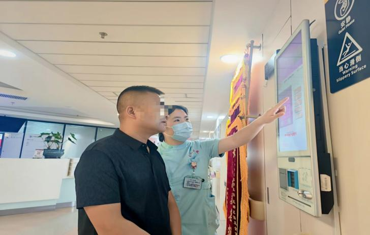 在智慧医疗导诊宣传周,门诊工作人员会向患者介绍智能手机和自助机在挂号、缴费等方面的操作流程和使用方法,手把手教患者使用,极大程度缓解患者面对智能服务设备的窘迫。