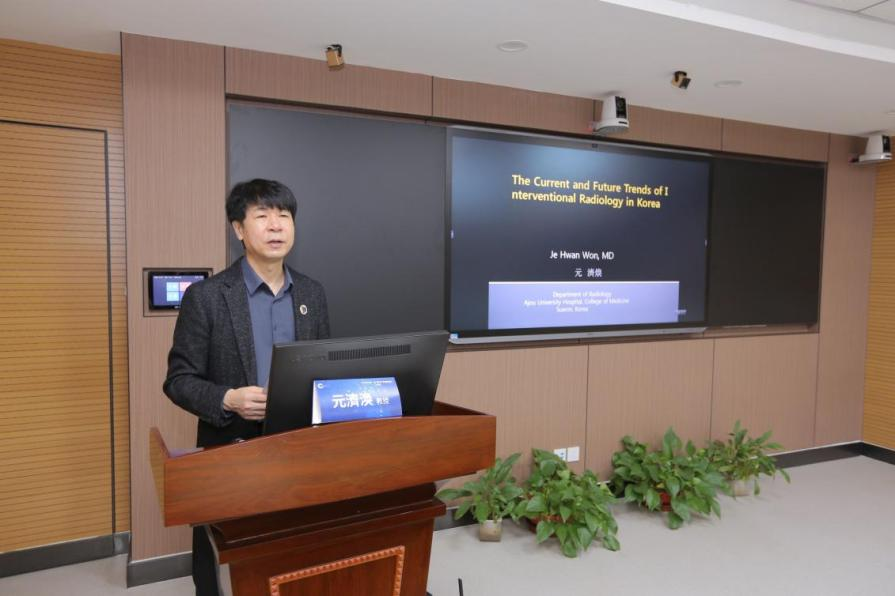 会上,Je Hwan Won教授以《韩国介入放射领域的现状与未来》为题,围绕老龄化社会下的外周动脉疾病、糖尿病足、血液透析及主动脉疾病发病率等方面,详细介绍了韩国在外周介入治疗方面的进展。兰大二院介入科副主任医师刘心简要介绍了科室的历史传承及发展现状。