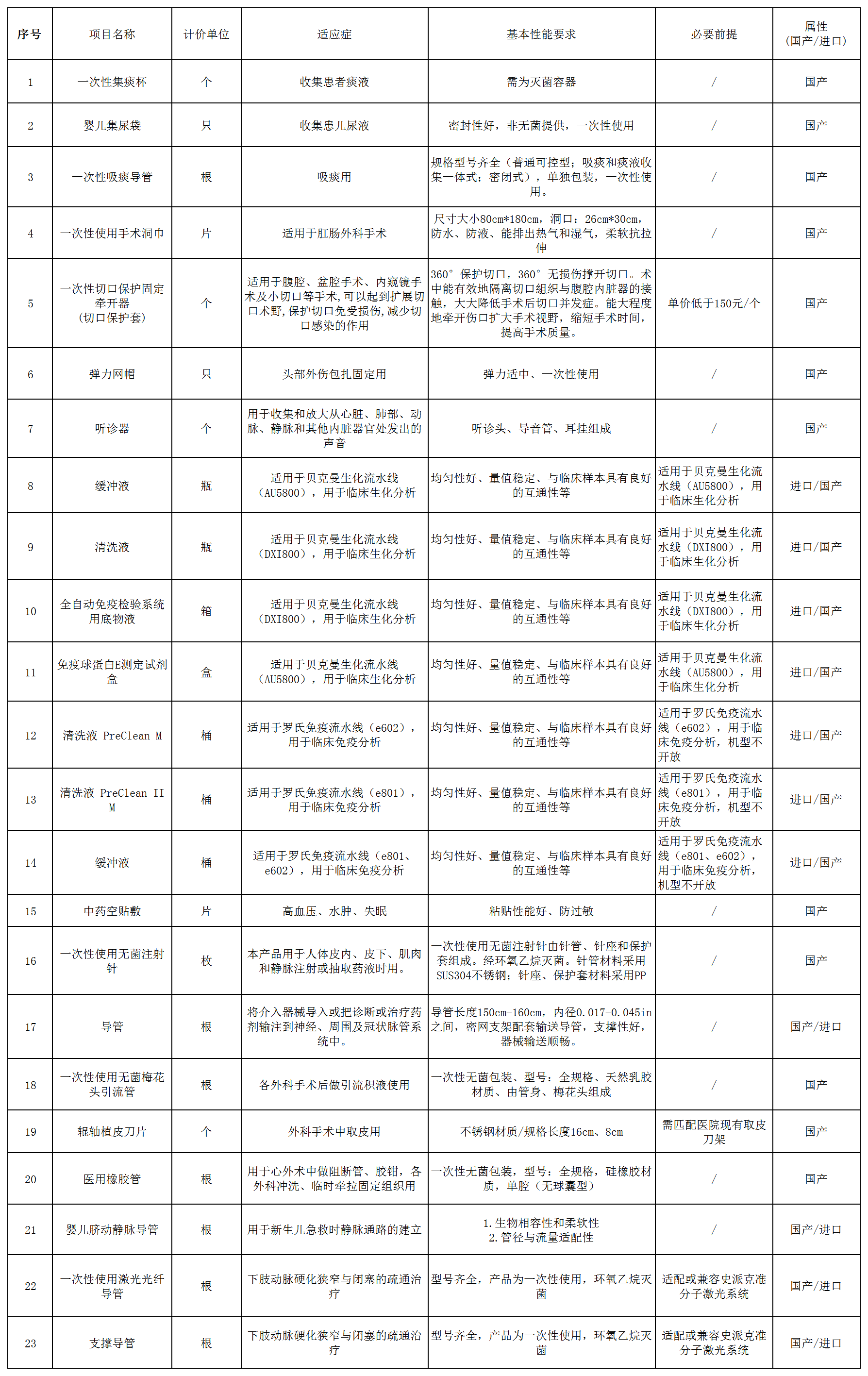 一、医用耗材遴选内容一览表: