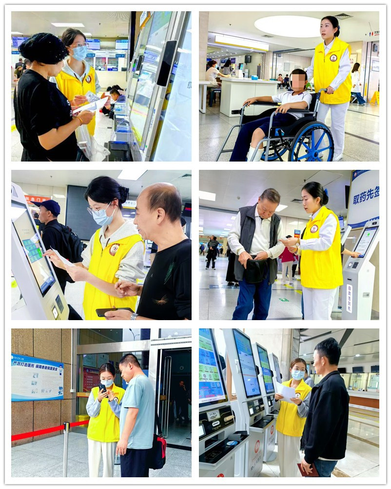 在服务过程中,志愿者们用真心、用行动践行了“十个多一点”行动要求。本着“哪里有需要,哪里就有志愿者”的初心,在服务过程中始终保持微笑;主动倾听患者需求,注意文明服务用语,与患者进行有效沟通;服务过程中对有需求的患者进行及时安慰疏导,有效化解了患者及家属的焦虑情绪;看到比较茫然无助的患者,主动询问是否需要帮助;对行动不便的患者,帮助家属护送患者,将他们送至诊区;鉴于现在电子化医疗的普及,很多老年患者、外地患者不知道如何操作,志愿者们手把手从如何申请就诊号、挂号、缴费、检查、取药等各个流程细节进行帮助,让他们就医不迷茫,并且对兰大二院的相关惠民政策进行耐心讲解,比如“一次挂号管三天”,对首家医院推出的“手机端出院医保结算和手机端挂号费医保支付”功能进行普及。