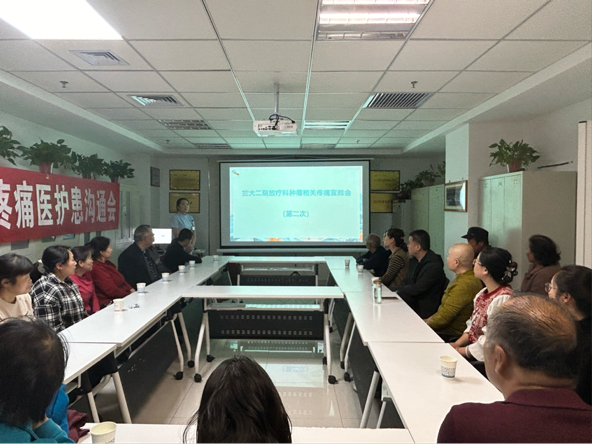 为了进一步提高患者对于疼痛的认知及管理,11月21日,兰大二院放疗科组织开展疼痛医护患沟通会。放疗科副主任医师闵现华,护士长史晓凤及患者、家属代表参加会议。