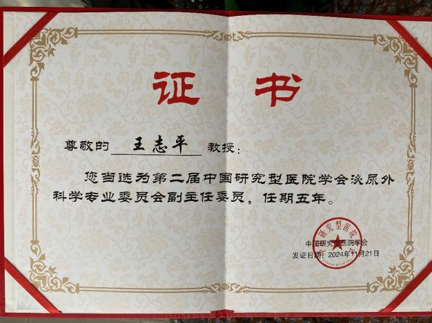 11月20日-21日,中国研究型医院学会泌尿外科学专业委员会换届大会暨2024年学术会议在武汉成功举行。会议号召泌尿外科领域同仁能够在医疗研究上做出更大更多贡献,将更多学术成果写入国际指南,为健康中国贡献力量。兰大二院泌尿外科王志平教授当选中国研究型医院泌尿外科专业委员会副主任委员,肖楠副主任医师当选委员,翟振兴副主任医师当选青年委员,以上荣誉的获得是对兰大二院泌尿外科学术影响力和研究成果的认可和肯定,标志着医院泌尿外科临床研究达到了新的高度,为推动西部地区泌尿外科事业的发展做出了贡献。泌尿外科将以此次会议为契机,携手共进,努力推动泌尿外科的高质量发展,为健康中国做出更大的贡献。