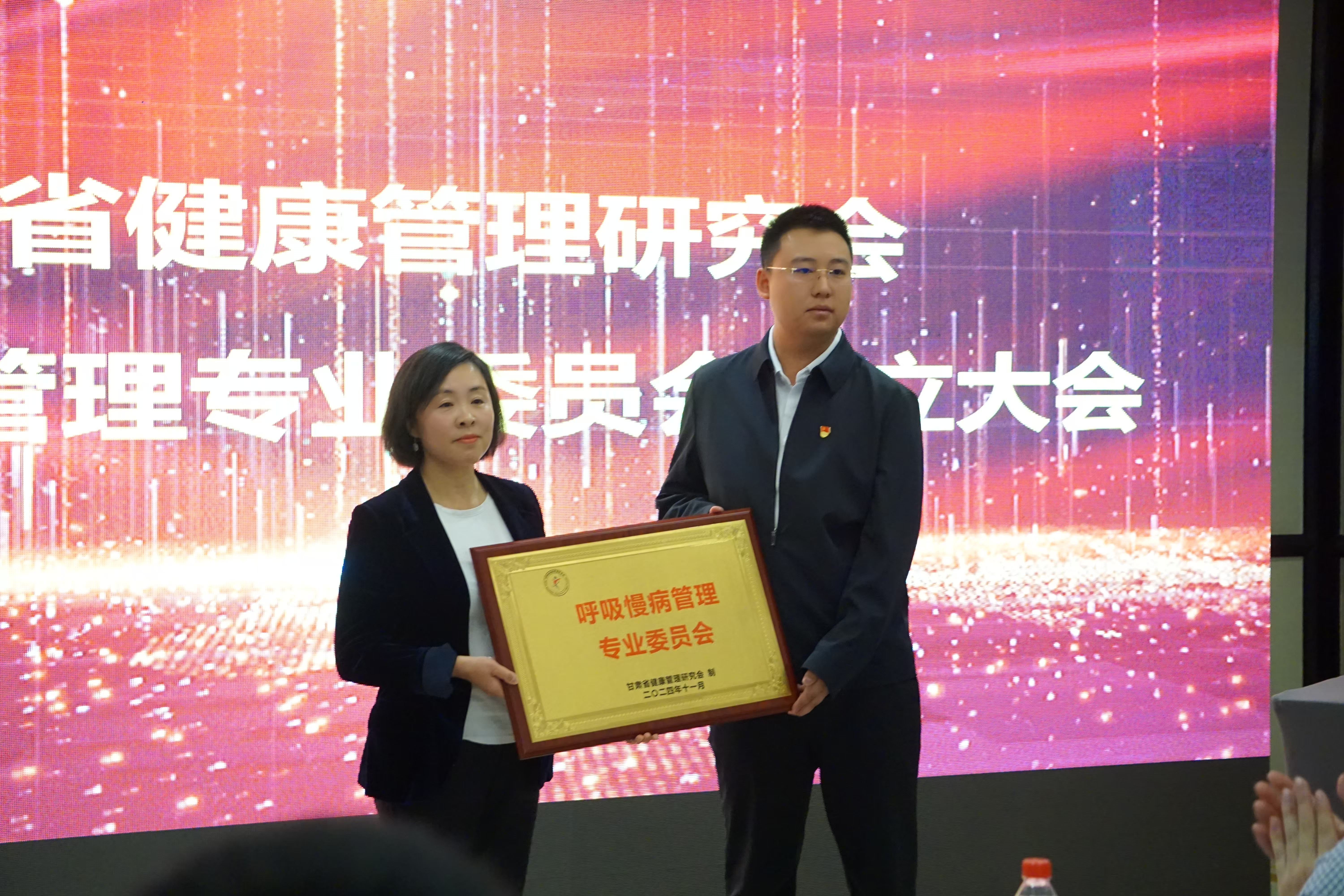 会上,成立了甘肃省健康管理研究会呼吸慢病管理专业委员会,兰大二院主任医师王虹当选为名誉主任委员,主任医师陶红艳当选为主任委员。呼吸慢病管理专业委员会的成立,旨在聚焦呼吸系统常见慢性疾病如慢阻肺、哮喘、肺癌等疾病的规范化管理、系统化与智能化处置流程和构建呼吸慢病康复、慢病护理及家庭处理一体化模式等。