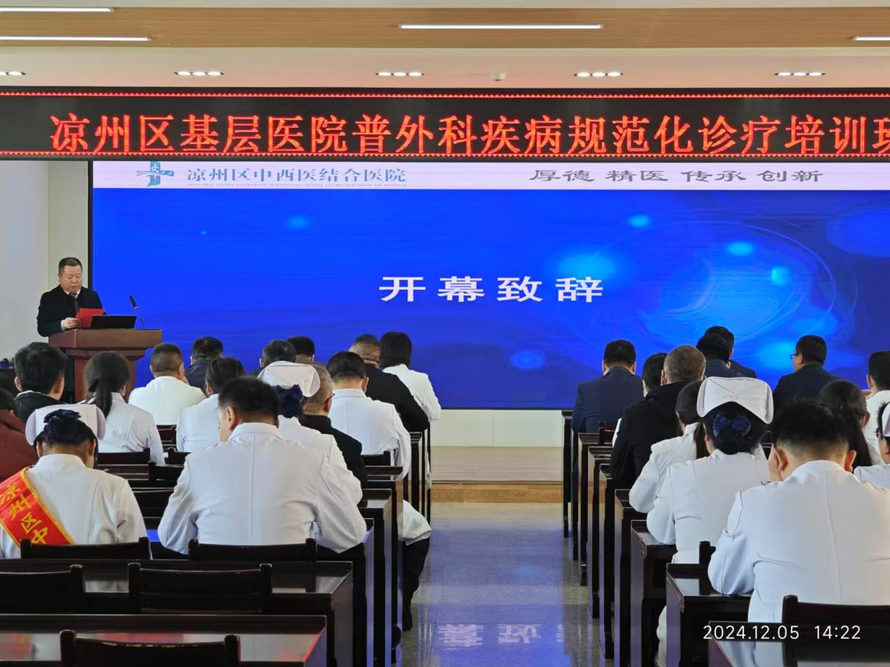 期间,凉州区中西医结合医院普通外科举办凉州区基层医院普外疾病规范化诊疗培训班,凉州区中西医结合医院领导班子及兰大二院普通外科专家等相关专业医护人员共100余人参加。会议由凉州区中西医结合医院副院长张先主持。