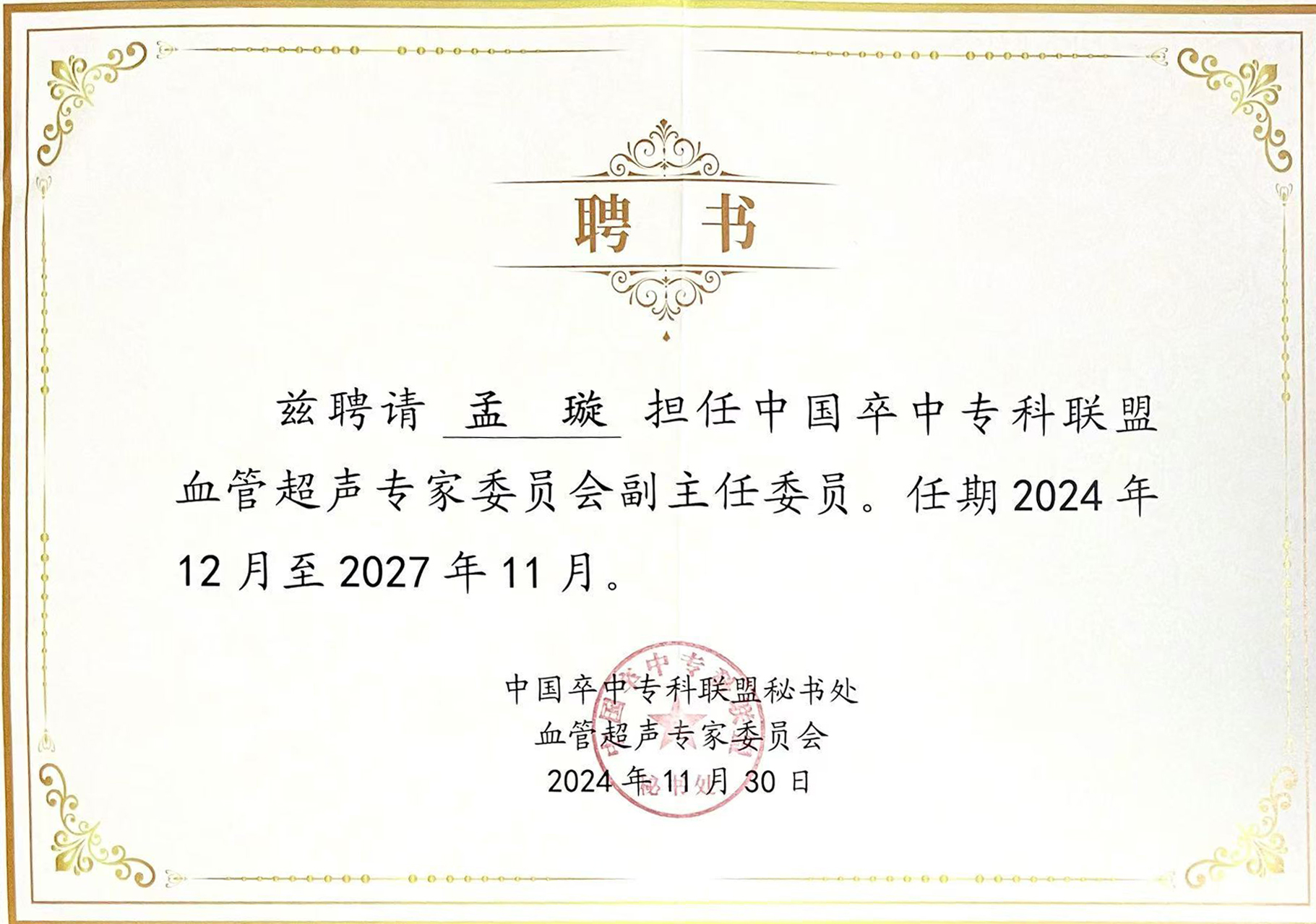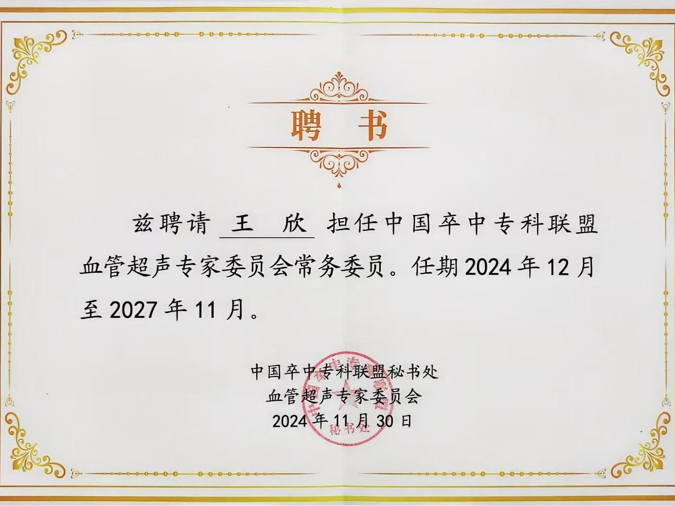 近日,2024年中国脑卒中大会在北京顺利召开。兰大二院神经内科主任张振昶带队参会。会议期间中国卒中专科联盟血管超声专家委员会正式成立,兰大二院神经血管功能检查科孟璇主任当选副主任委员,王欣主任当选常务委员。