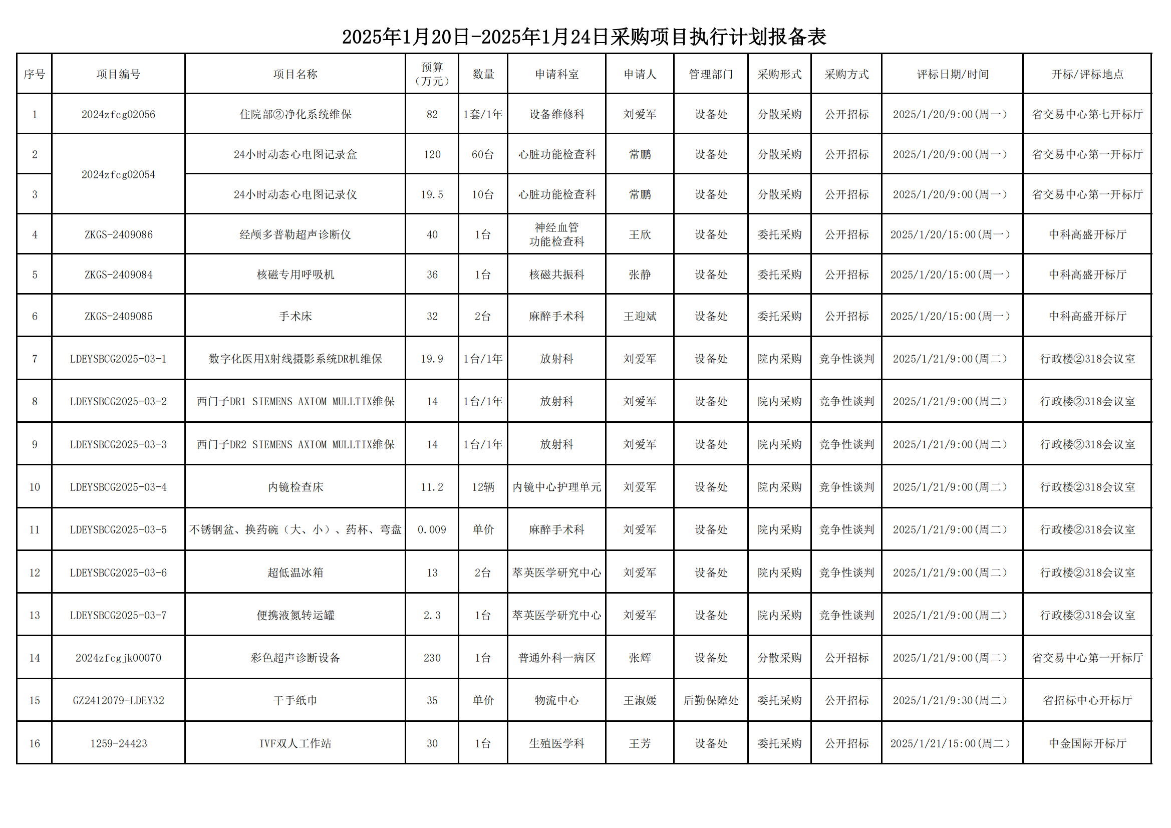 2025年1月20日-2025年1月24日采购项目执行计划报备表