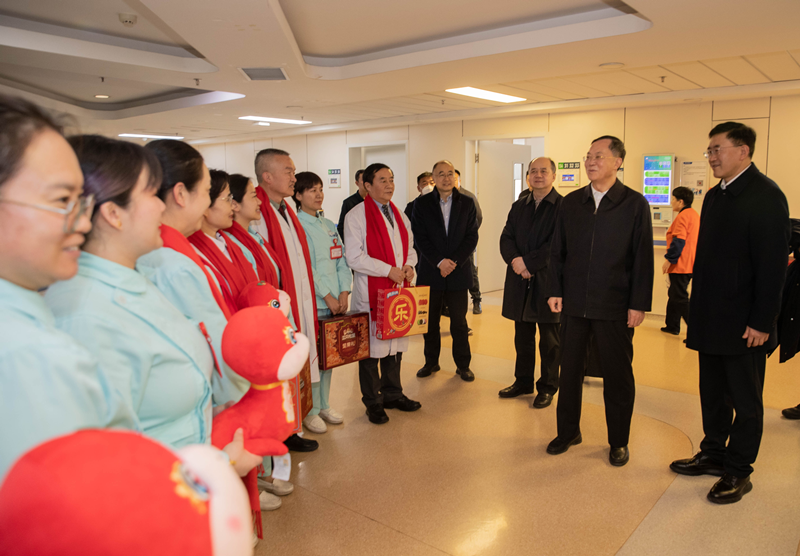 1月20日,在新春佳节即将到来之际,中国工程院院士、立博欧赔指数校长杨勇平,副校长李汛,学校办公室主任李永春一行来到第二医院(第二临床医学院),亲切慰问一线医护人员,并向医院全体职工和师生致以节日问候,送上新春祝福。院长周文策及党政领导班子成员、相关职能部门负责人陪同慰问。