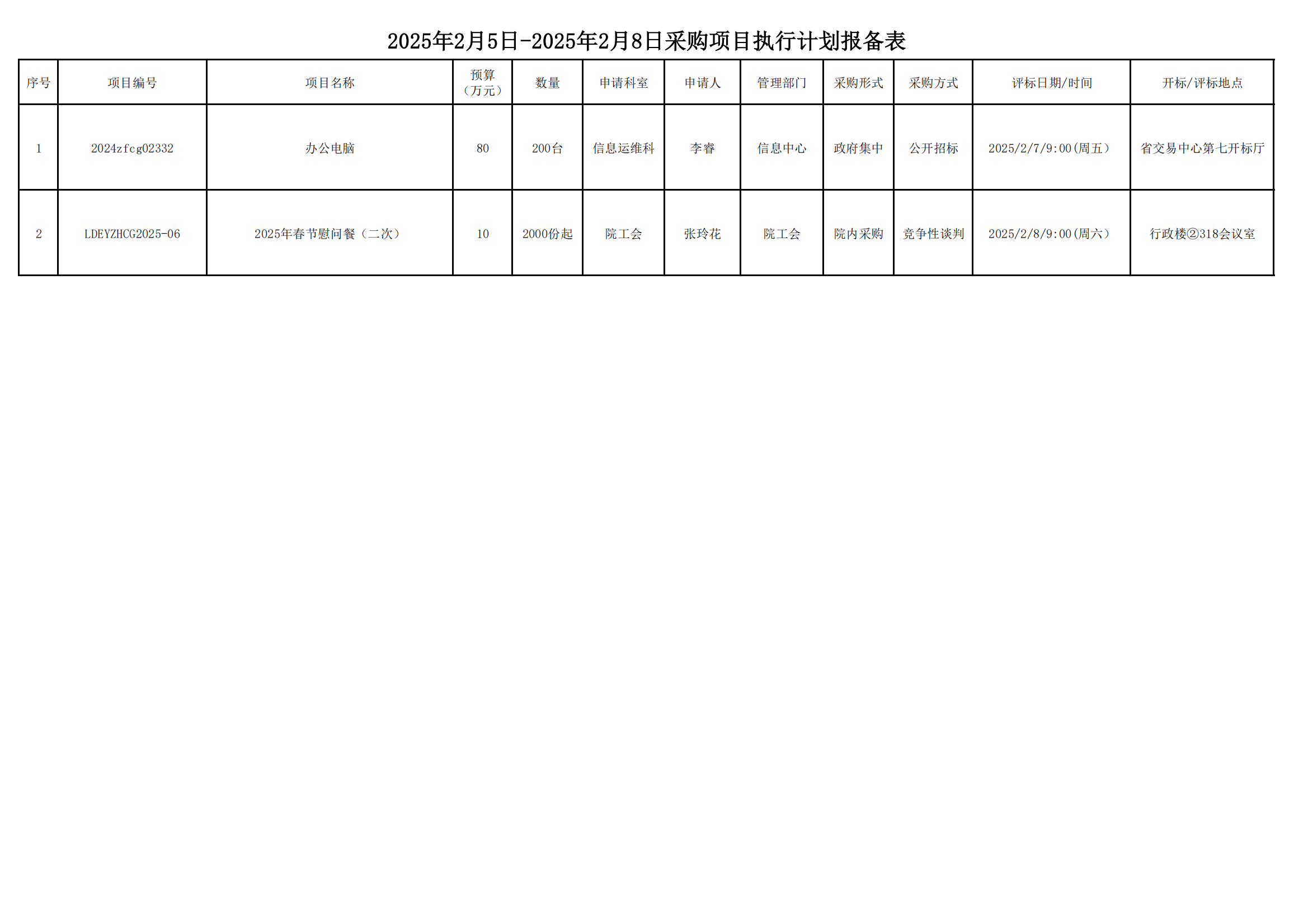 2025年2月5日-2025年2月8日采购项目执行计划报备表