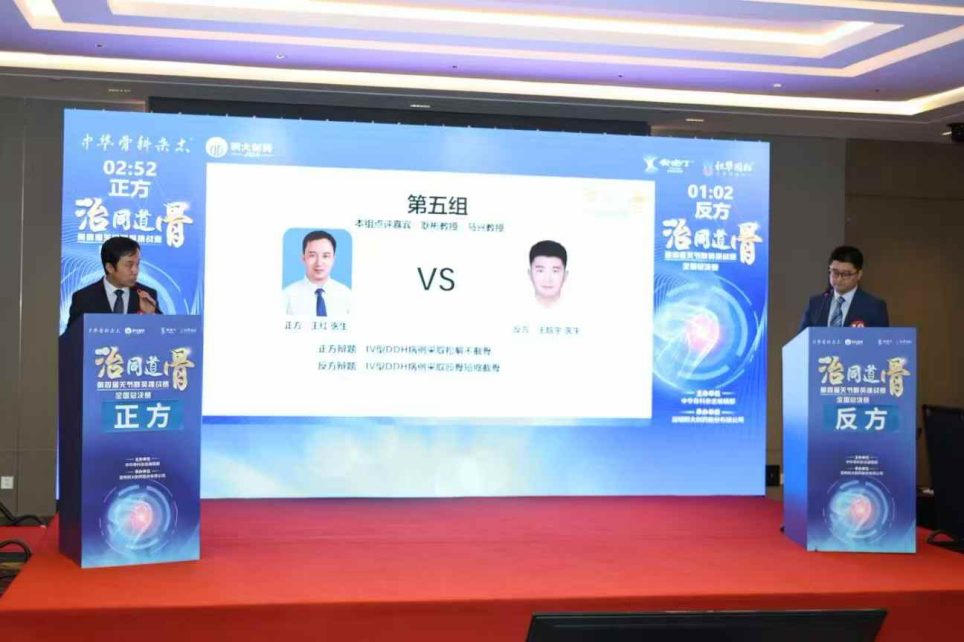 在备受关注的微辩论环节中,王红医生以“Crowe IV型DDH行全髋关节置换术选择松解不截骨”为论点,与对手展开激烈交锋。开篇立论阶段,他以翔实的文献数据与临床案例为支撑,逻辑严谨地论证观点,以铿锵有力的陈述赢得现场阵阵掌声;攻辩环节中,面对对手的犀利提问,他凭借扎实的理论功底与丰富的临床经验从容应对,巧妙运用辩论策略掌控节奏,最终以缜密的思辨能力占据优势,充分展现了青年骨科医师的学术素养与应变能力。