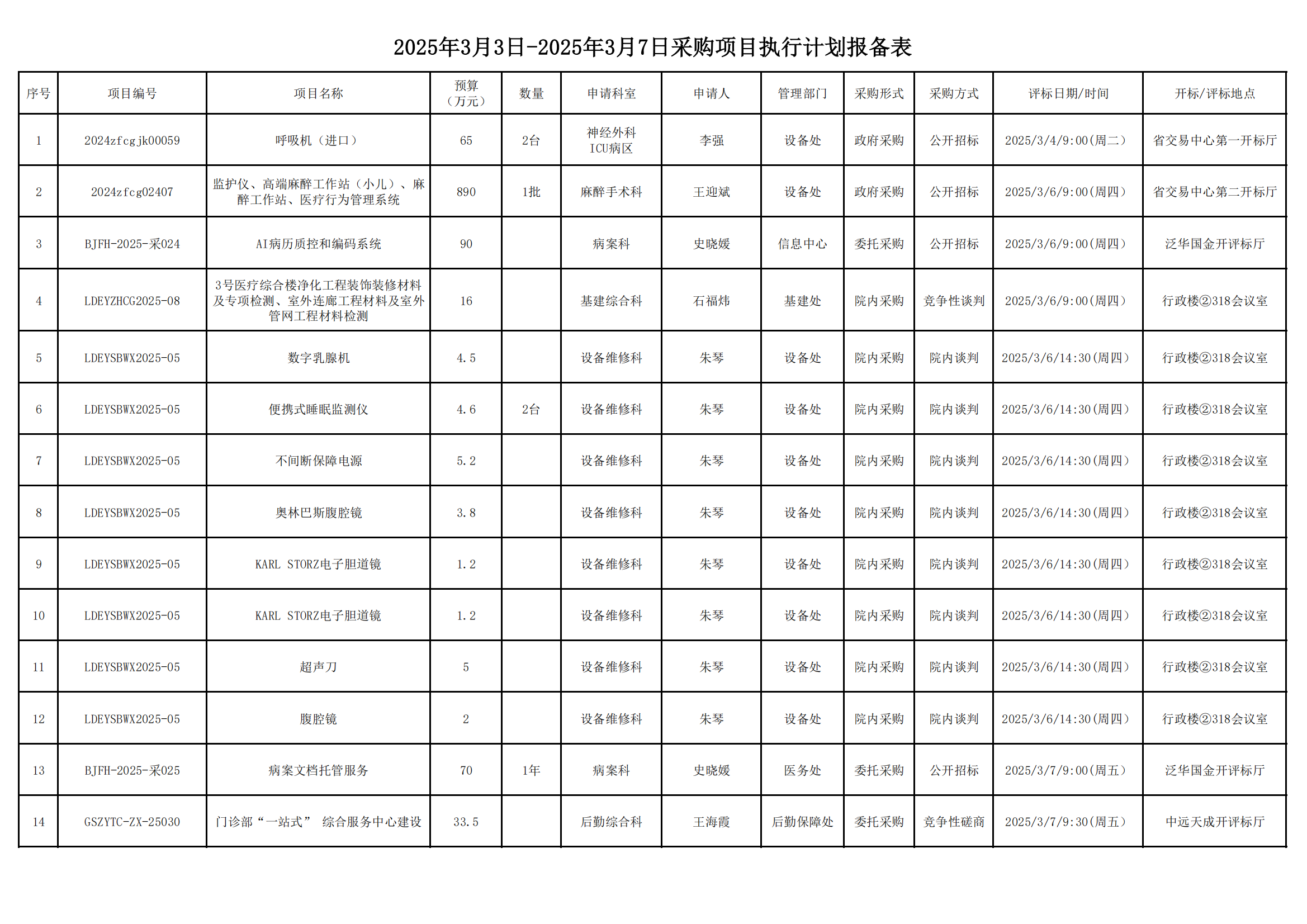 2025年3月3日-2025年3月7日采购项目执行计划报备表