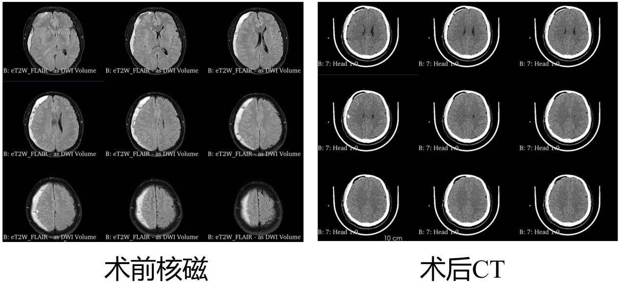 患者因“间断头痛4天,加重1天”入院。入院后积极完善相关检查,头颅MR显示,患者存在右侧额顶颞部硬膜下血肿(亚急性期)。由于患者硬膜下血肿存在机化分隔,传统钻孔引流术治疗CSDH,虽然操作简单、耗时短,但复发率约为10%-20%,对分隔型血肿清除不彻底。神经外科侯博儒主任医师团队经过多学科专家分析讨论,决定实施锁孔入路联合神经内镜术治疗。手术术程顺利,术后患者恢复良好。