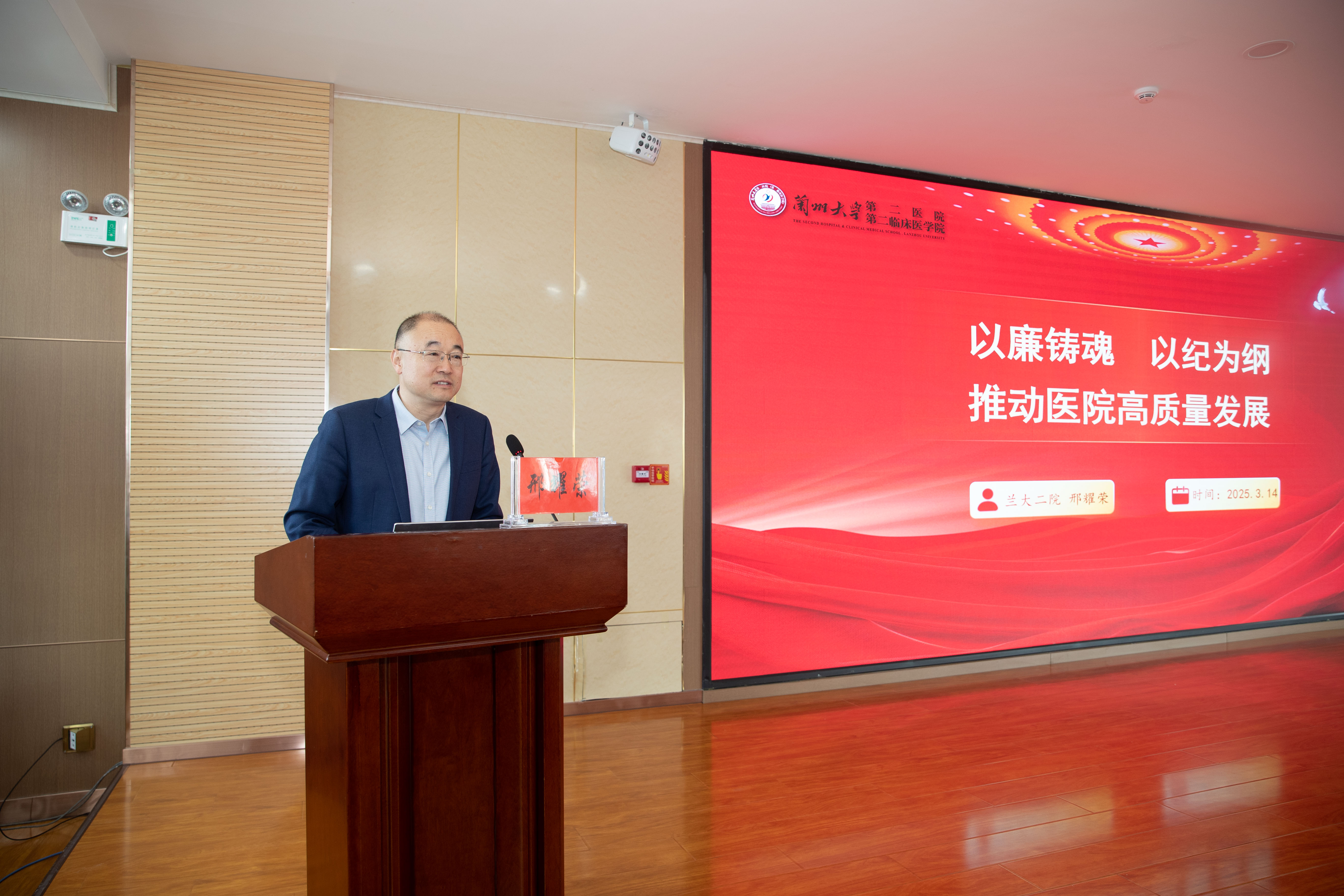邢耀荣以《以廉铸魂,以纪为纲,推动医院高质量发展》为题,巧妙援引一系列生动且极具警示意义的现实案例,深入浅出地阐释了廉政建设对于医院管理干部的重要性。他强调,管理干部要时刻保持头脑清醒,将职业道德底线作为不可逾越的行为红线,切实做到廉洁自律。