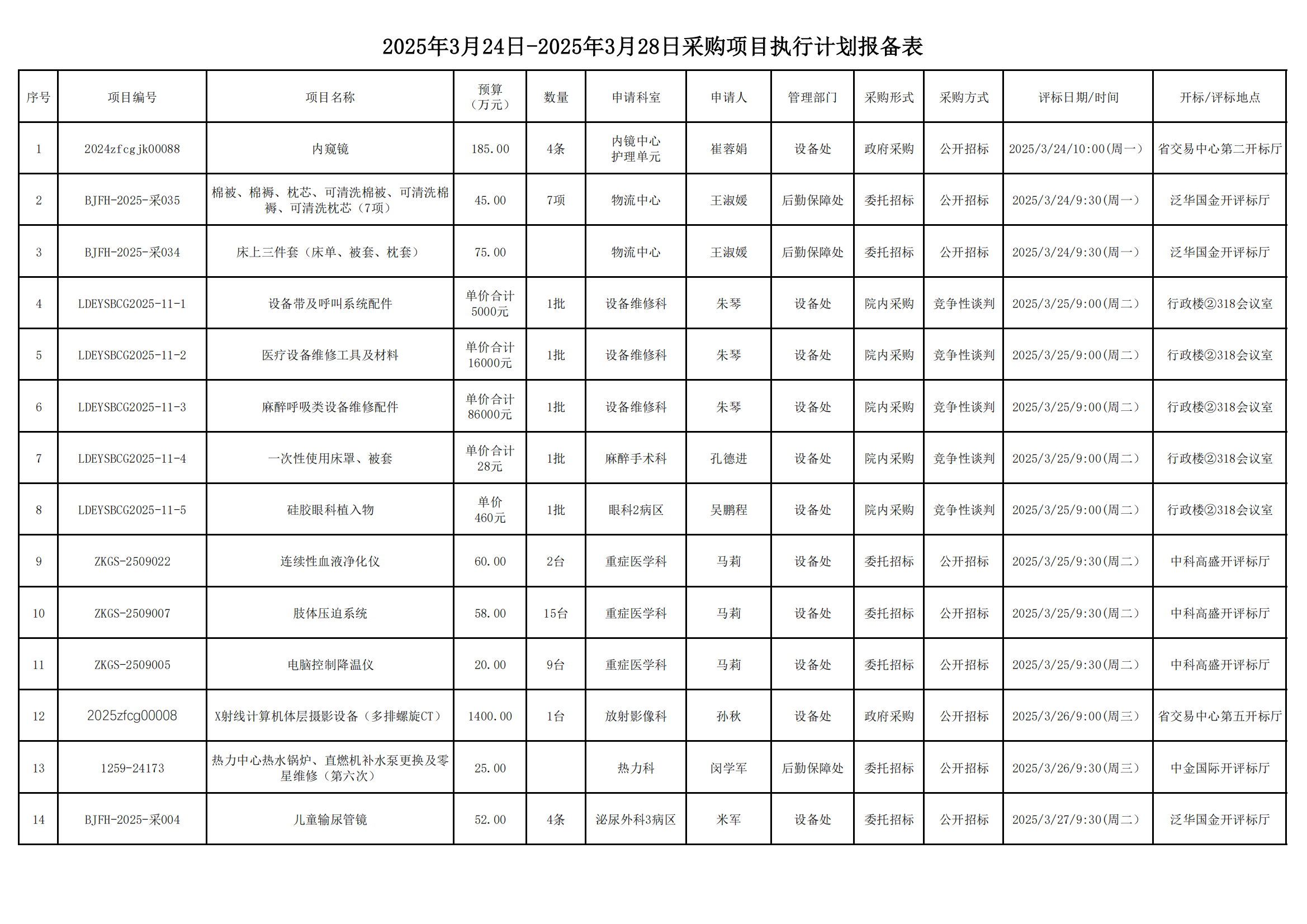 2025年3月24日-2025年3月28日采购项目执行计划报备表